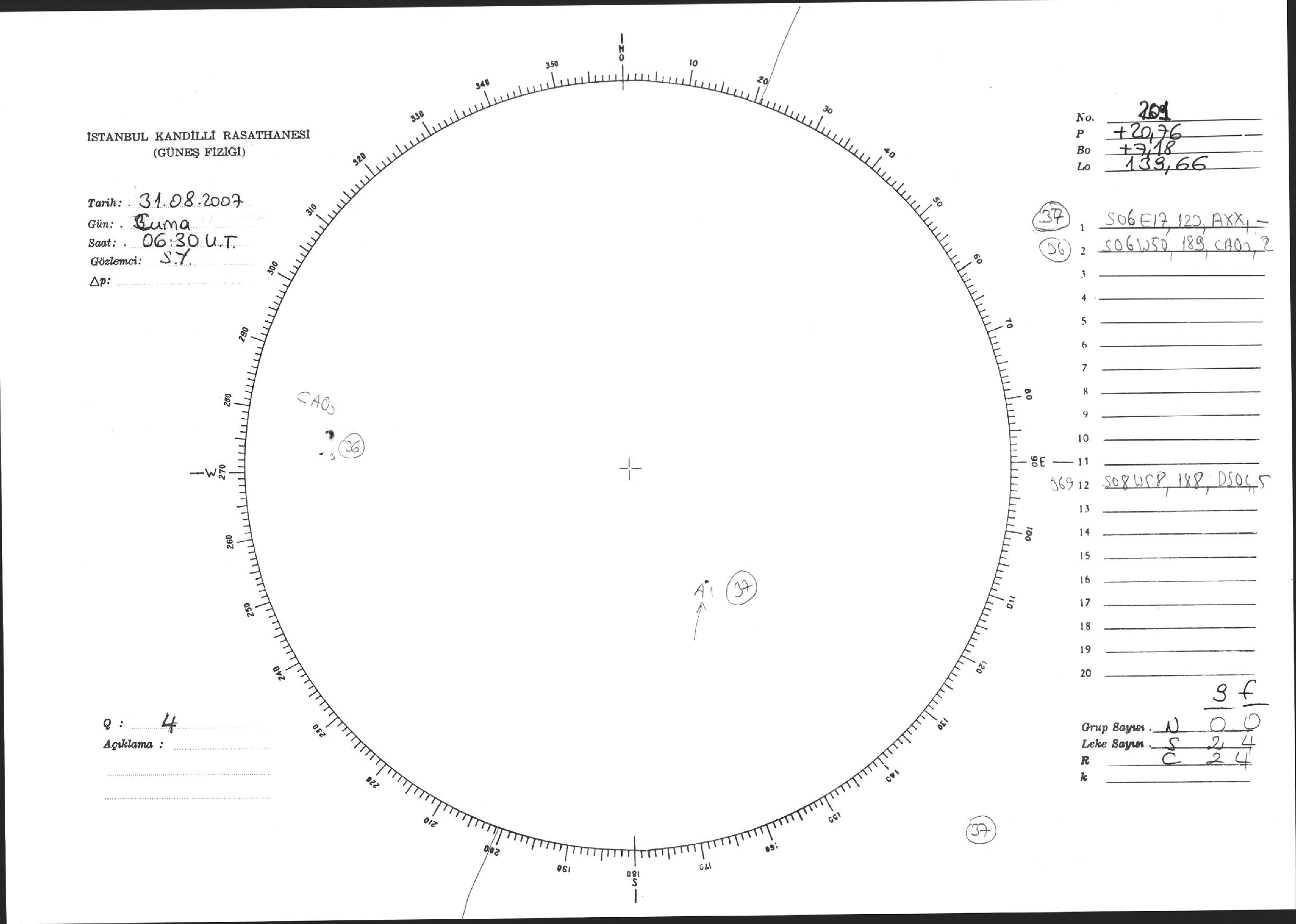 Güneş Lekesi Çizimi - 31.08.2007
