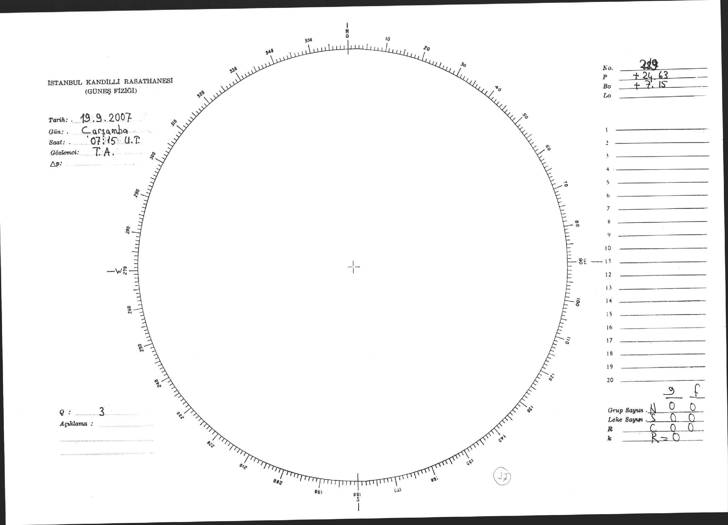 Güneş Lekesi Çizimi - 19.09.2007
