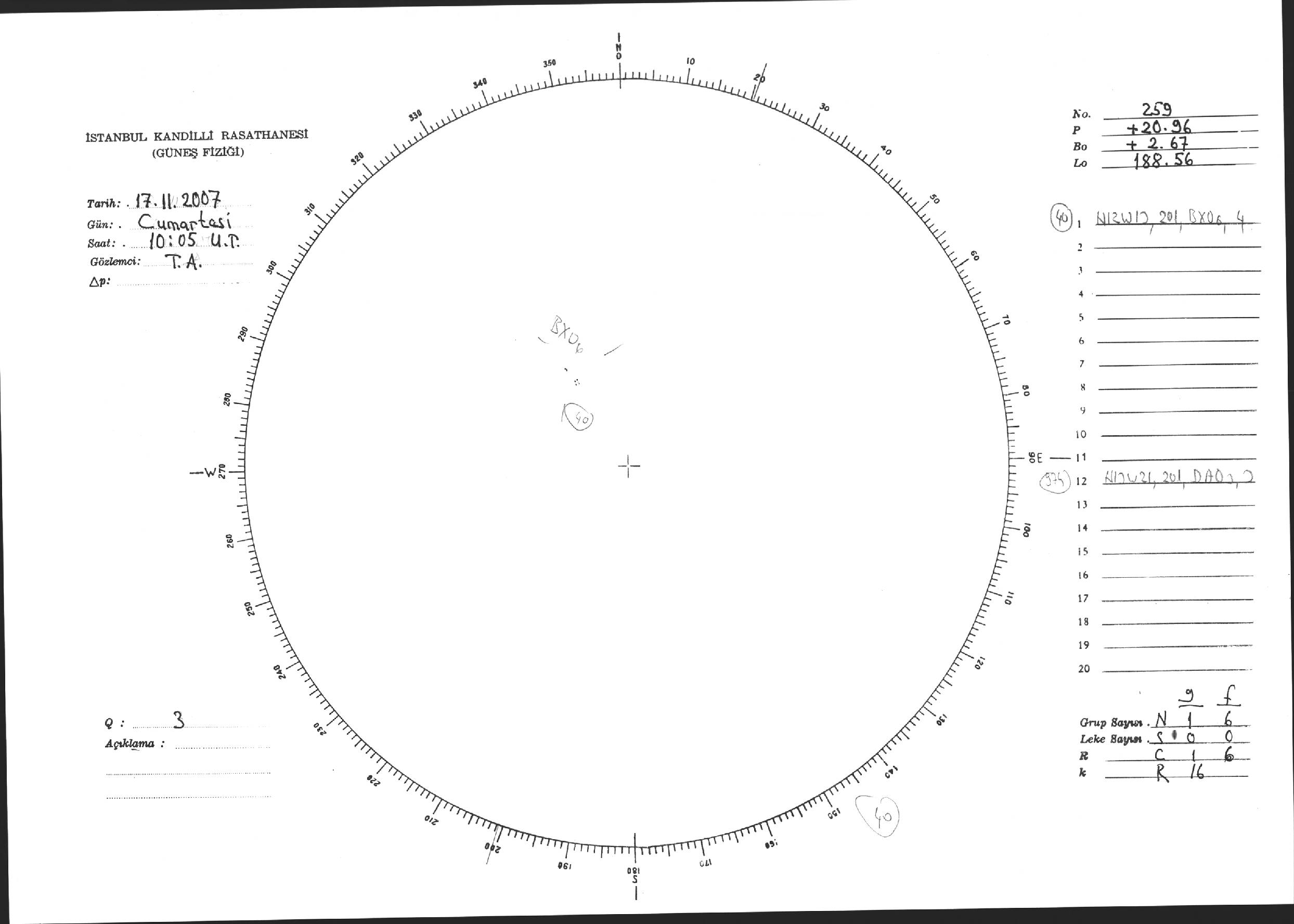 Güneş Lekesi Çizimi - 17.11.2007