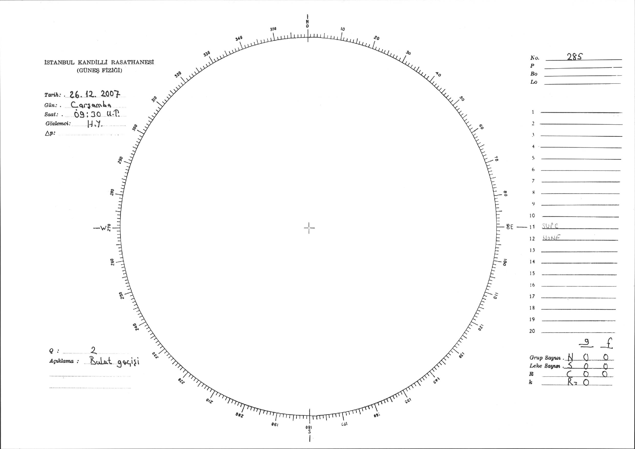 Güneş Lekesi Çizimi - 26.12.2007