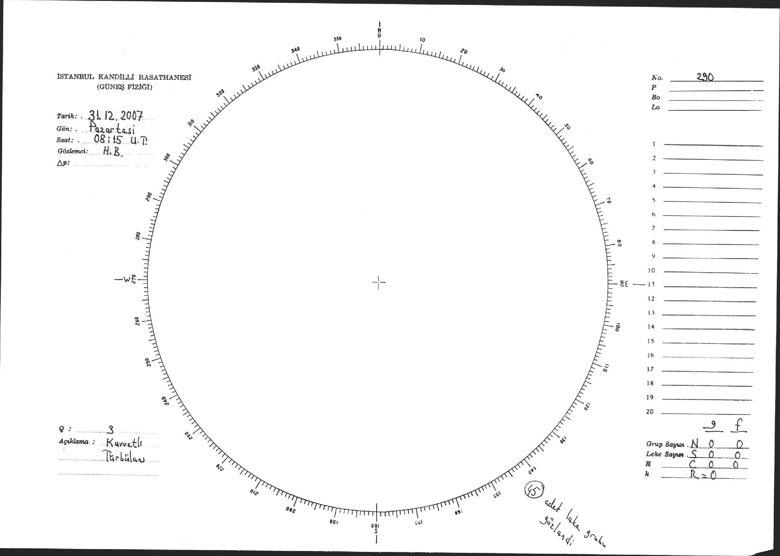 Güneş Lekesi Çizimi - 31.12.2007