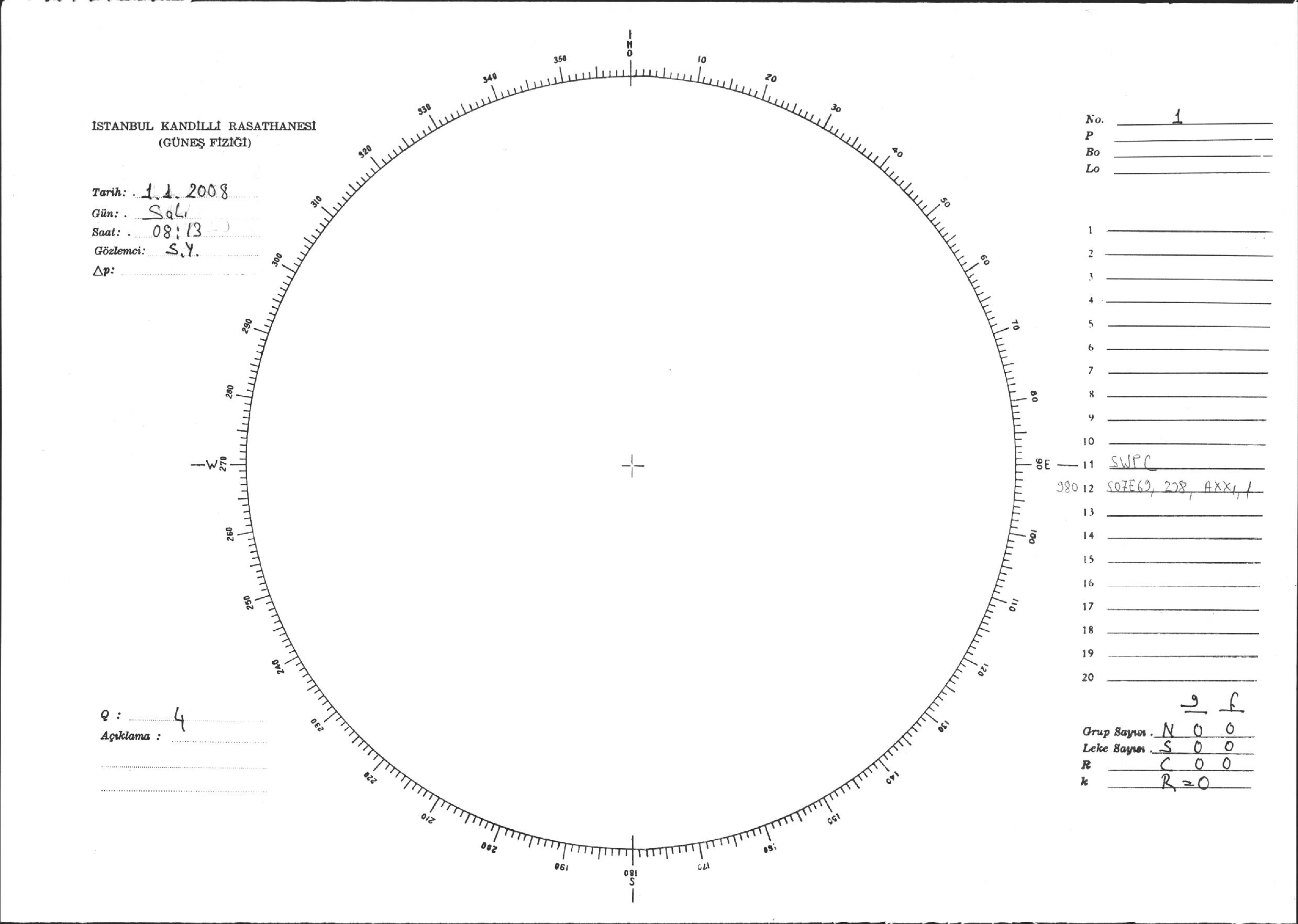 Güneş Lekesi Çizimi - 01.01.2008