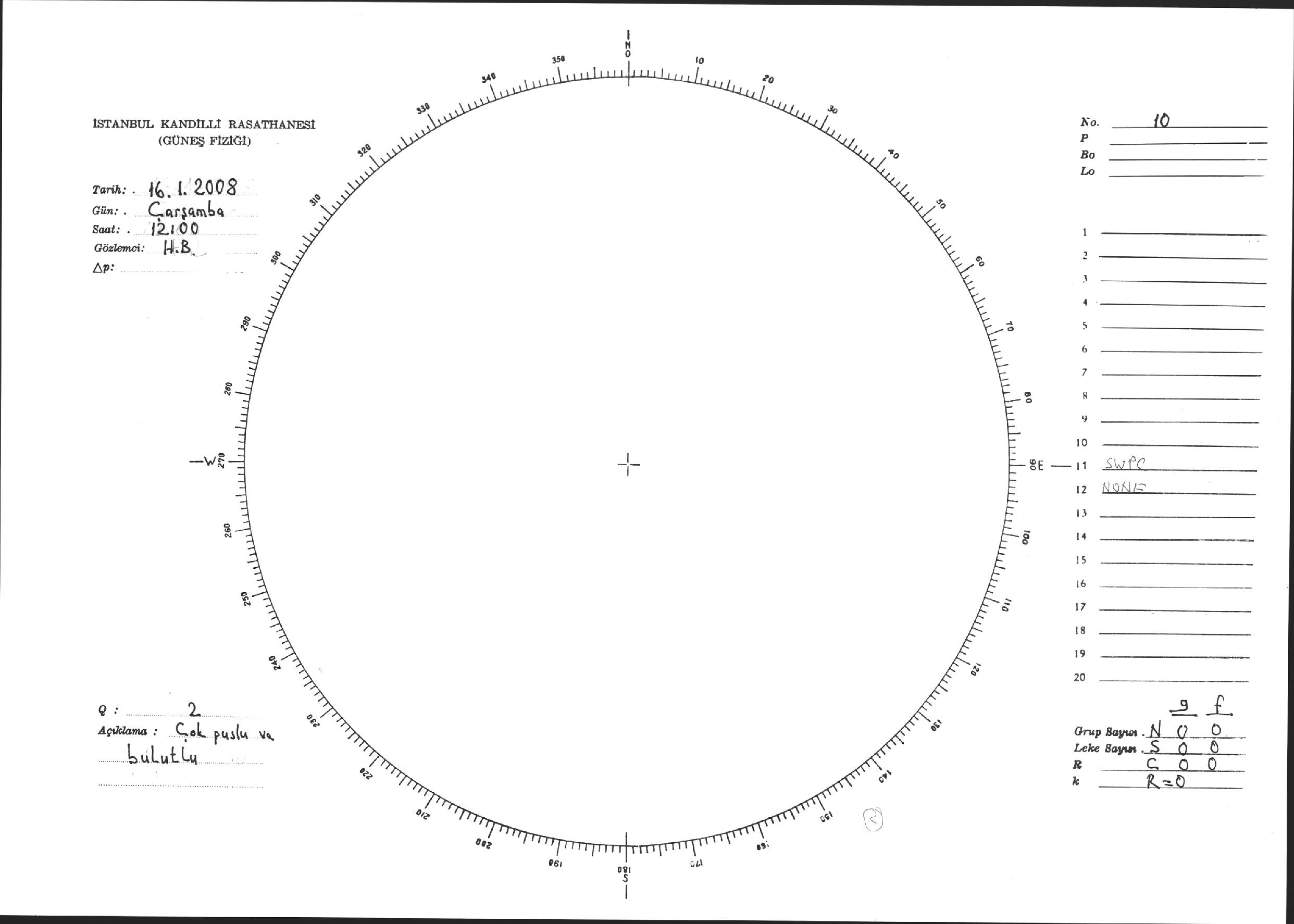 Güneş Lekesi Çizimi - 16.01.2008