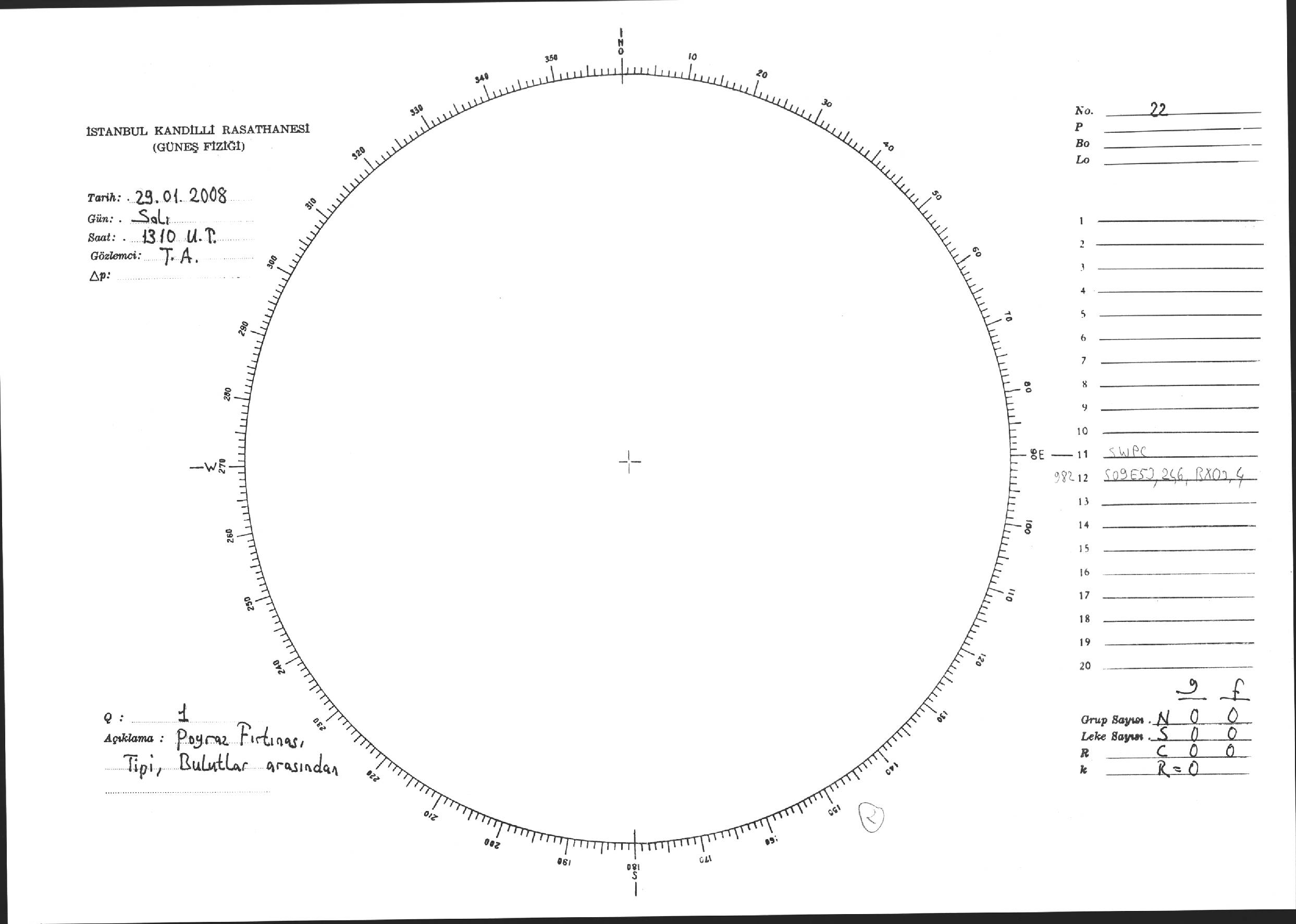 Güneş Lekesi Çizimi - 29.01.2008