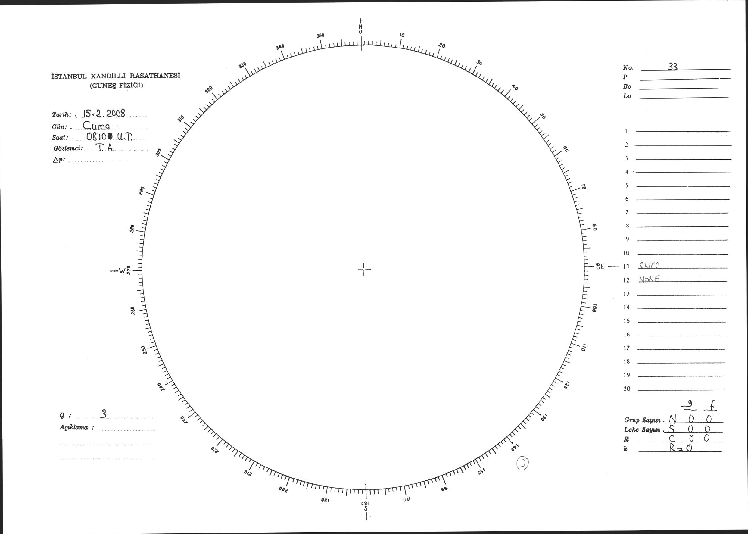 Güneş Lekesi Çizimi - 15.02.2008