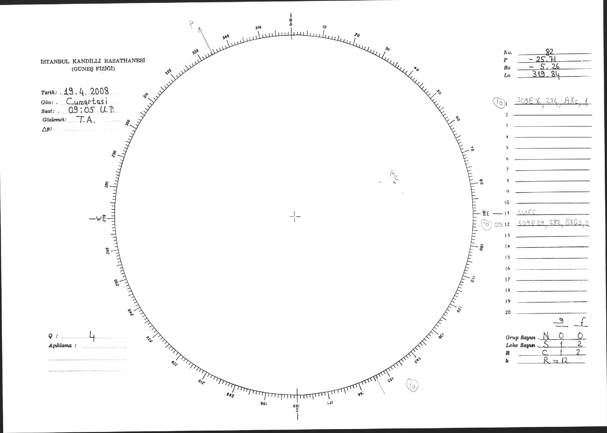 Güneş Lekesi Çizimi - 19.04.2008