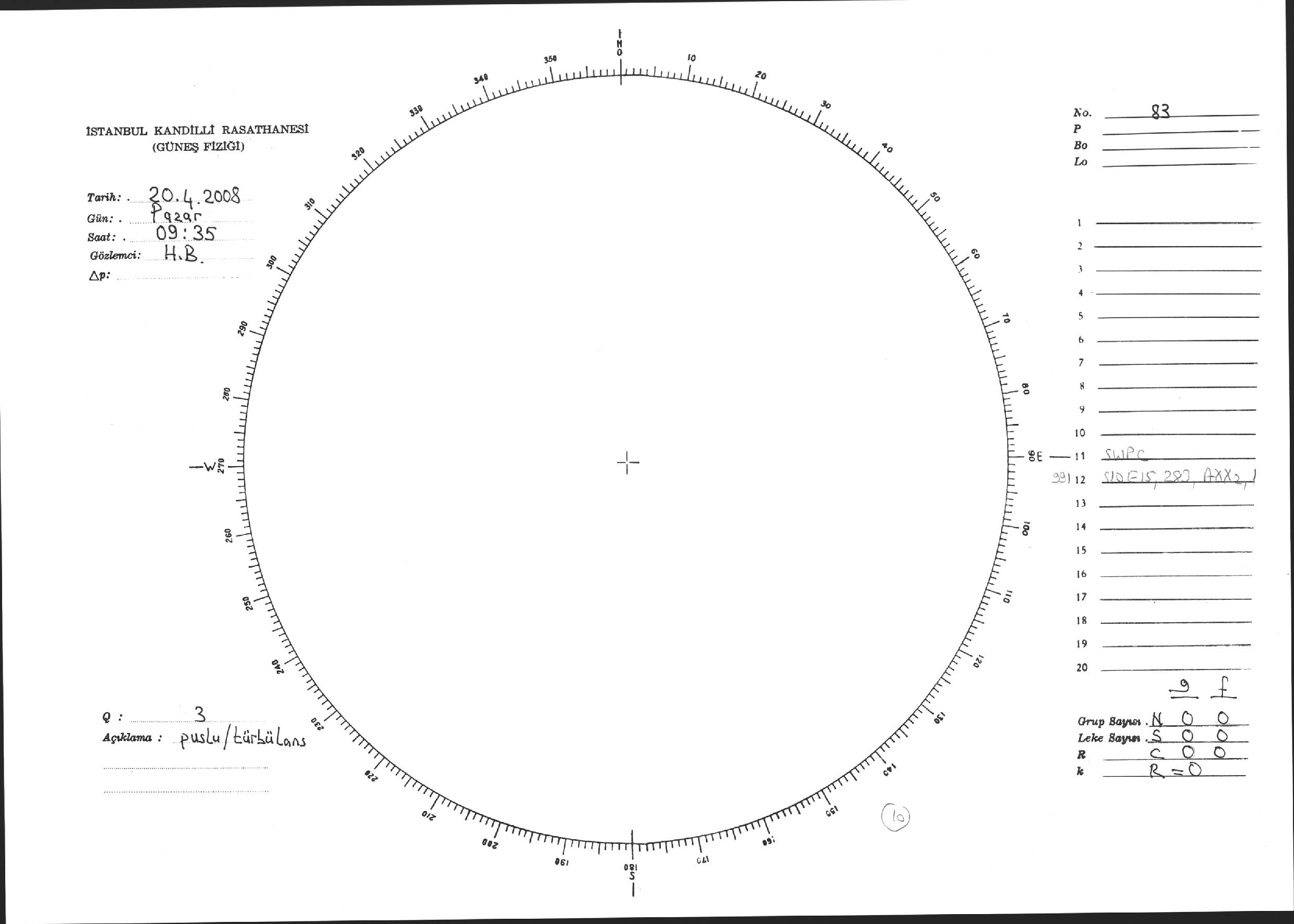 Güneş Lekesi Çizimi - 20.04.2008