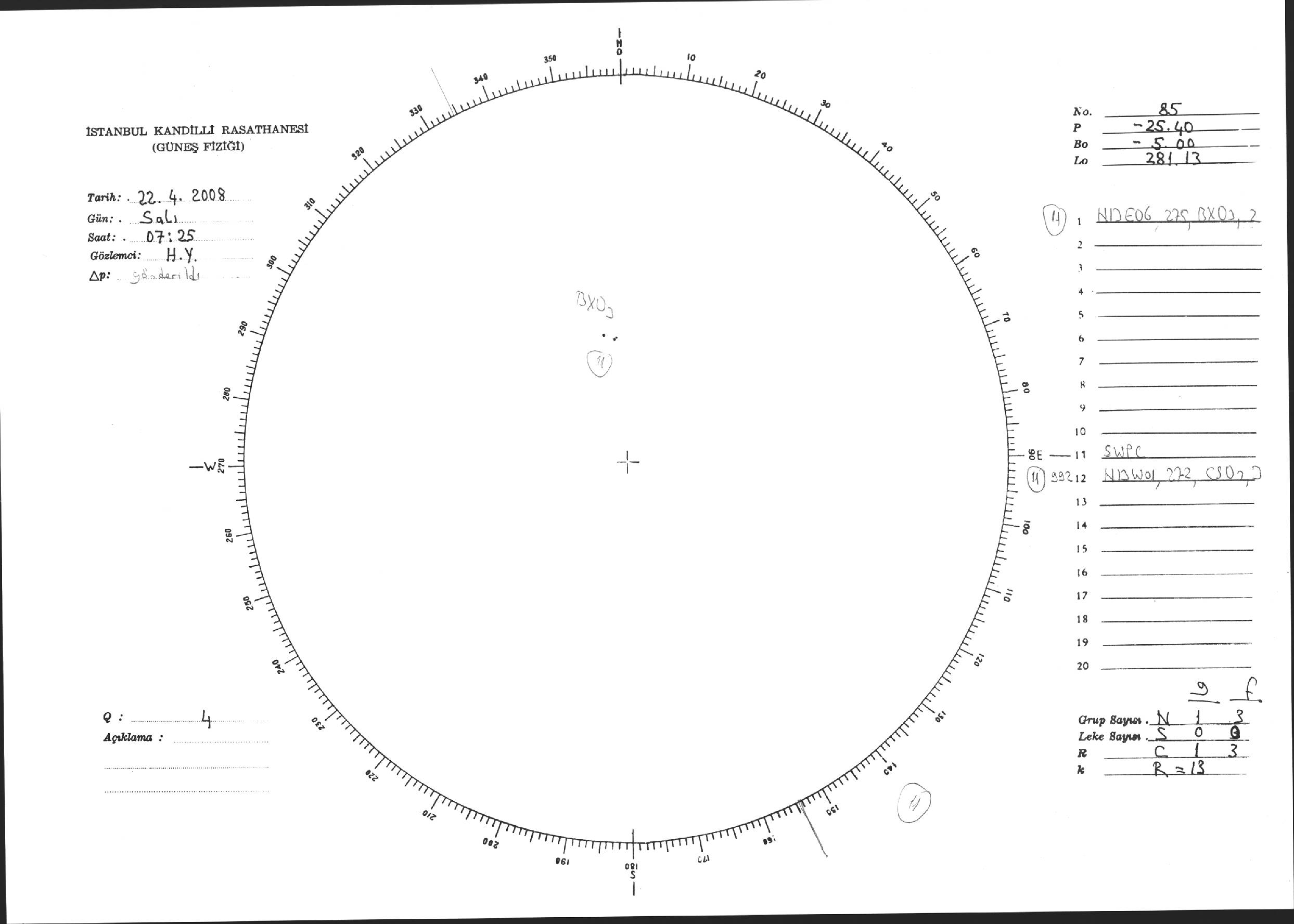 Güneş Lekesi Çizimi - 22.04.2008