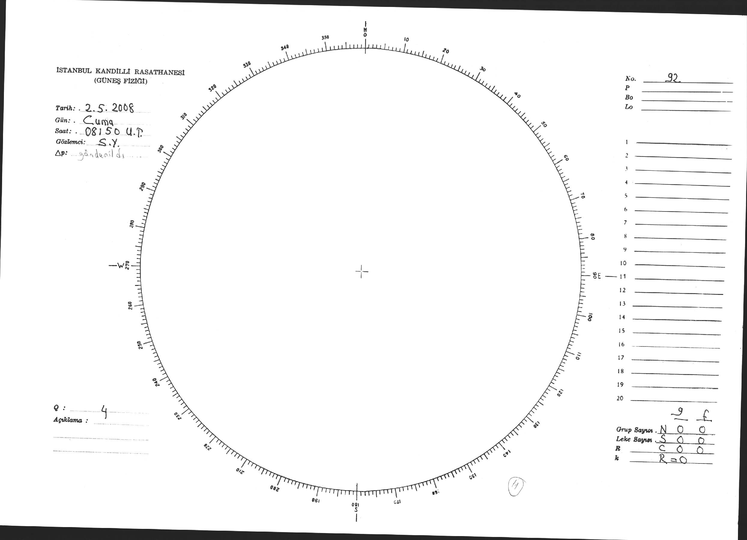 Güneş Lekesi Çizimi - 02.05.2008