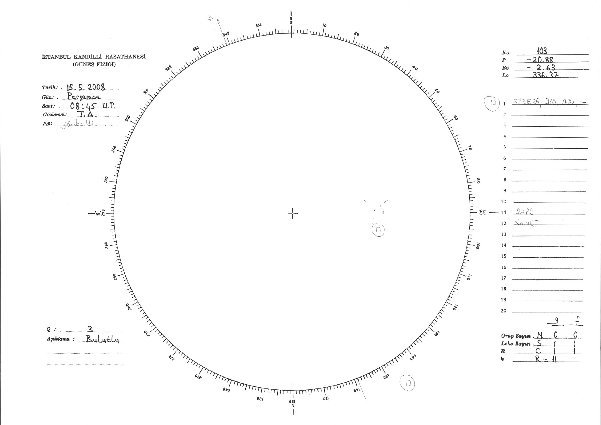 Güneş Lekesi Çizimi - 15.05.2008