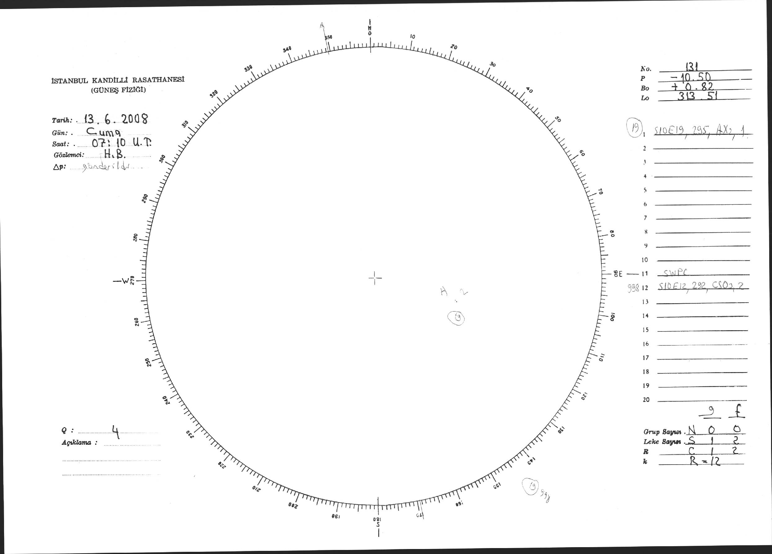 Güneş Lekesi Çizimi - 13.06.2008