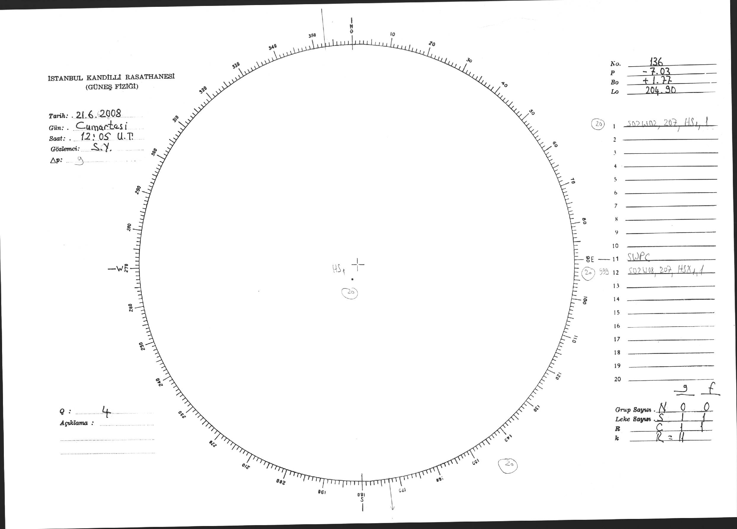Güneş Lekesi Çizimi - 21.06.2008