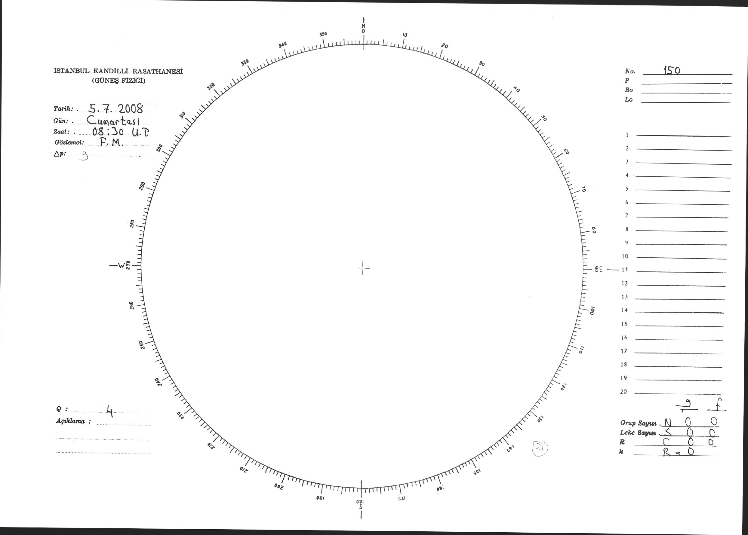 Güneş Lekesi Çizimi - 05.07.2008