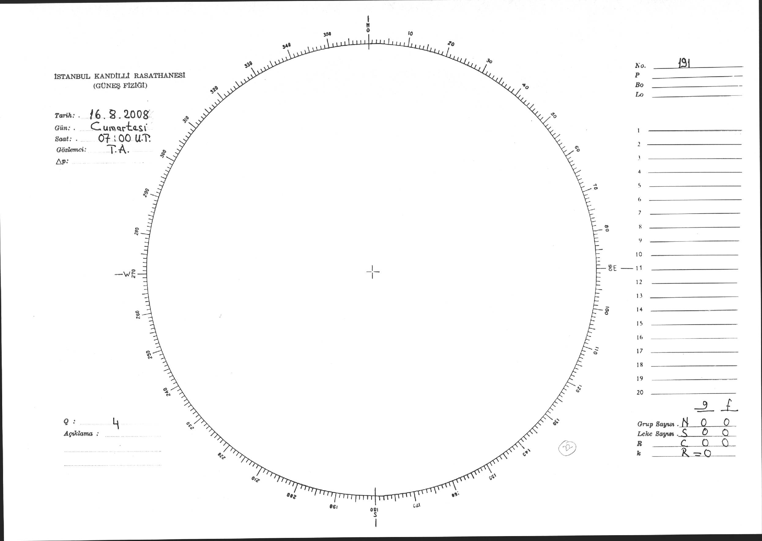 Güneş Lekesi Çizimi - 16.08.2008