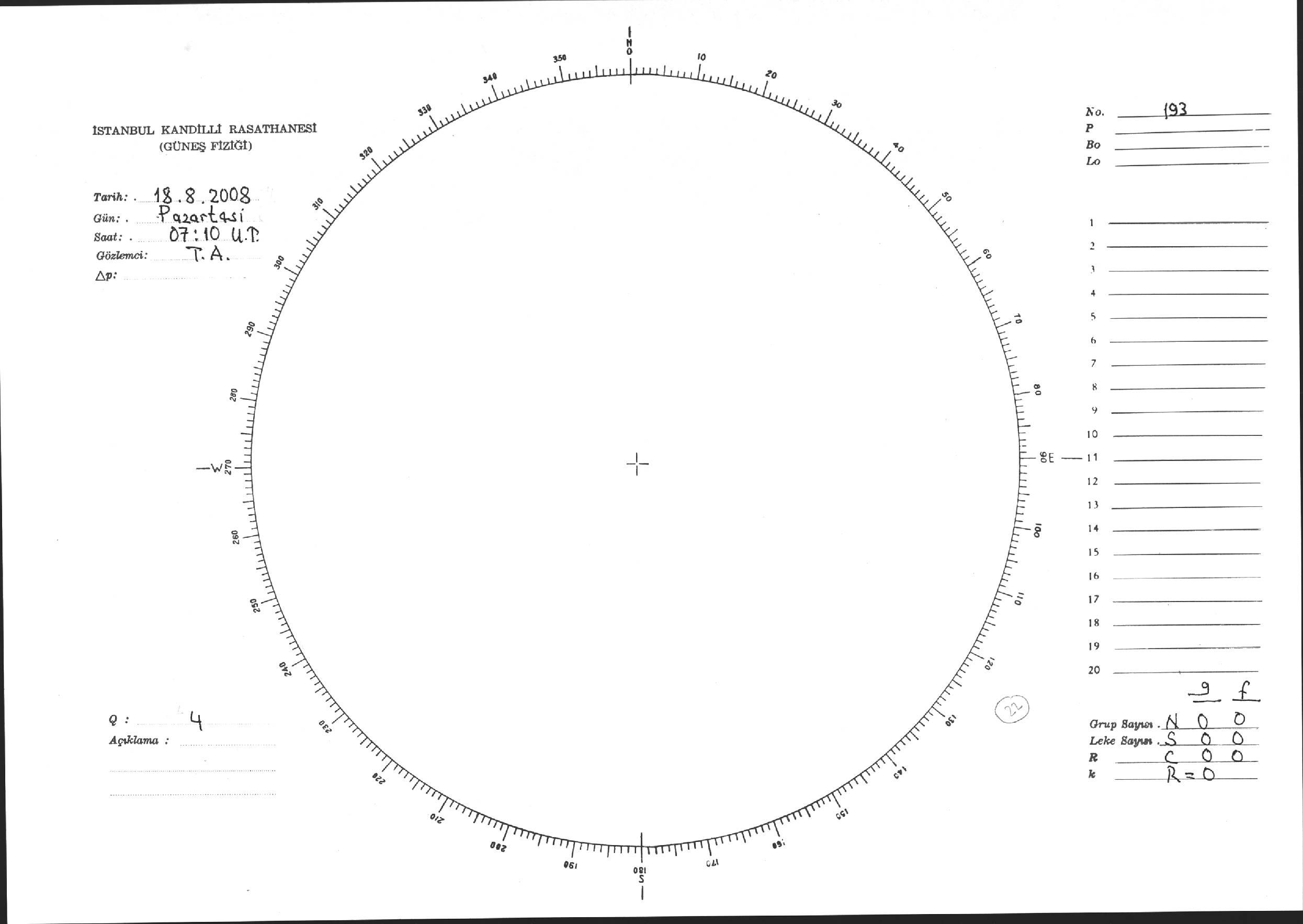Güneş Lekesi Çizimi - 18.08.2008