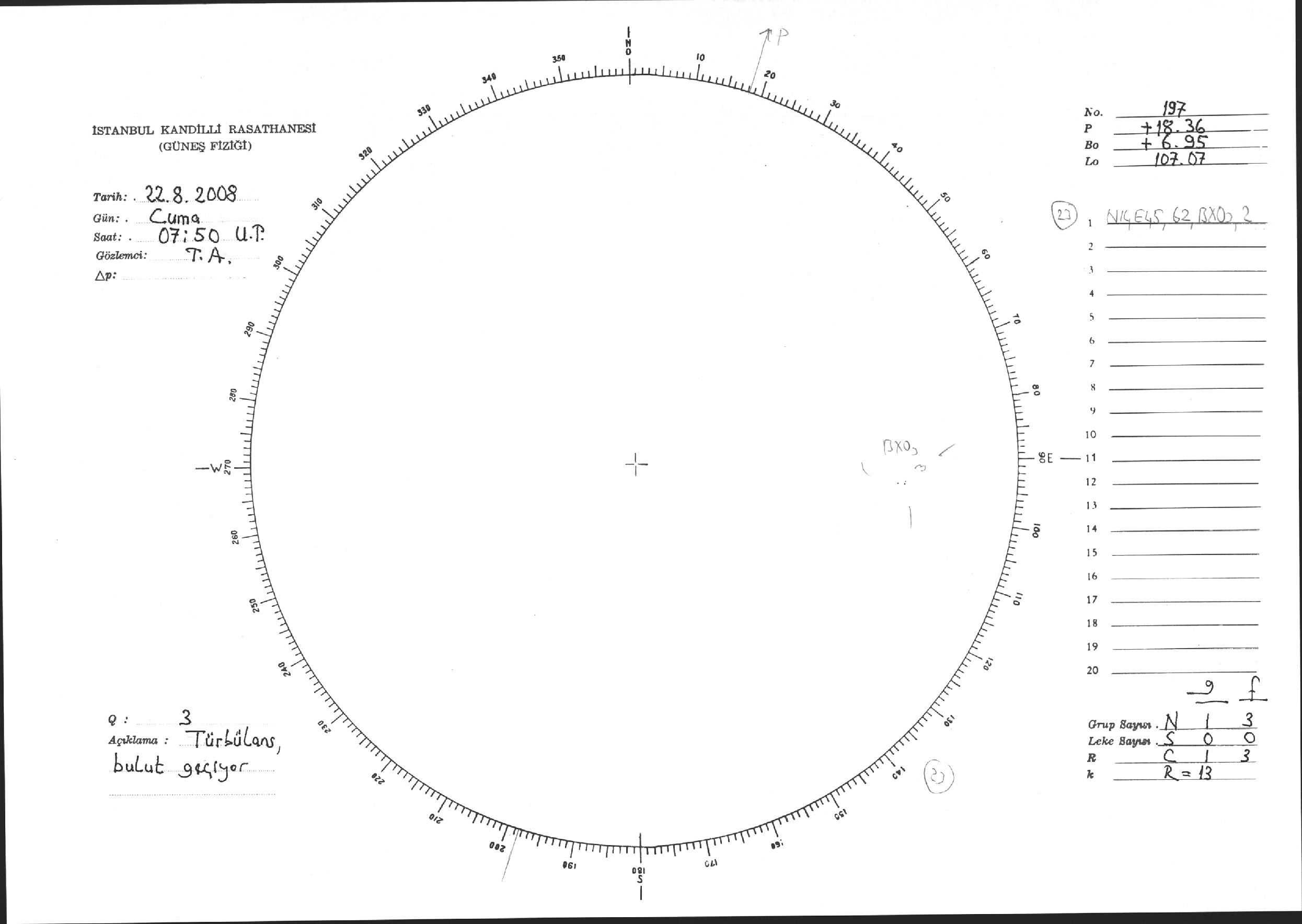 Güneş Lekesi Çizimi - 22.08.2008