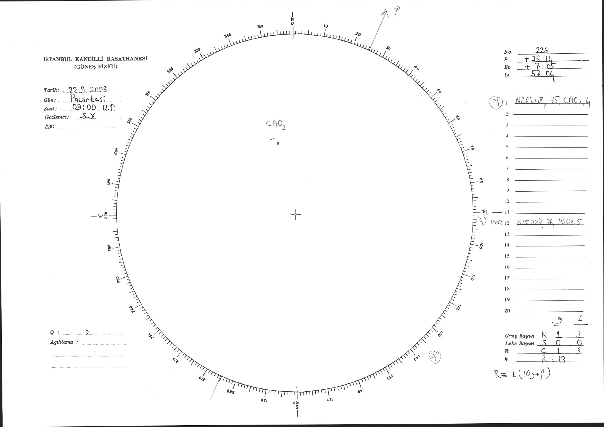 Güneş Lekesi Çizimi - 22.09.2008