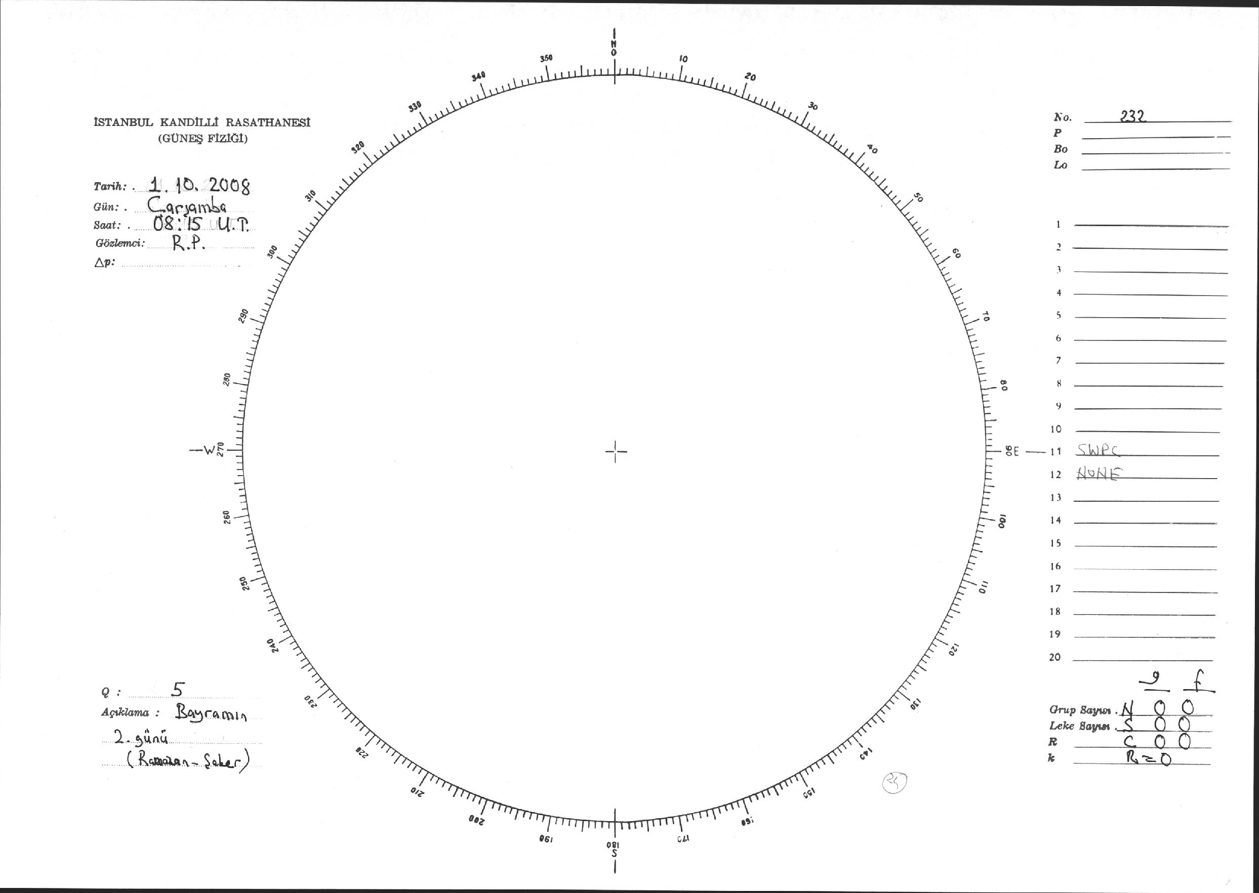 Güneş Lekesi Çizimi - 01.10.2008
