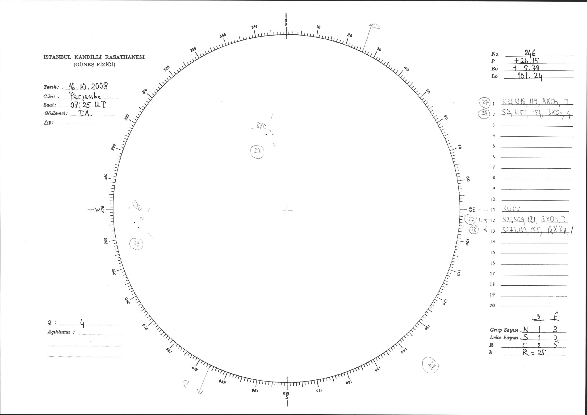 Güneş Lekesi Çizimi - 16.10.2008