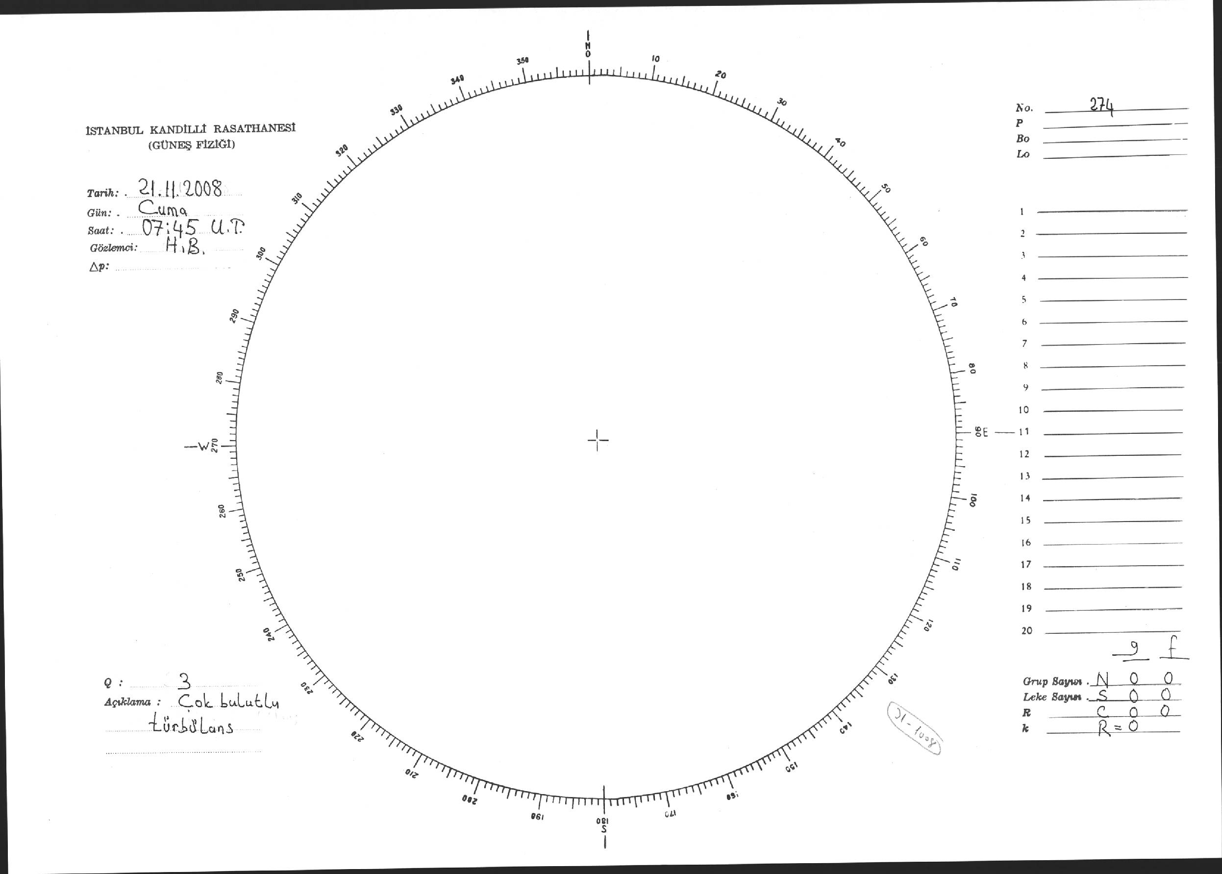 Güneş Lekesi Çizimi - 21.11.2008