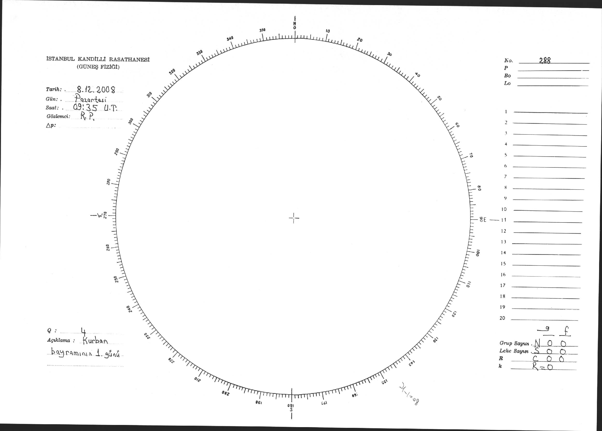 Güneş Lekesi Çizimi - 08.12.2008