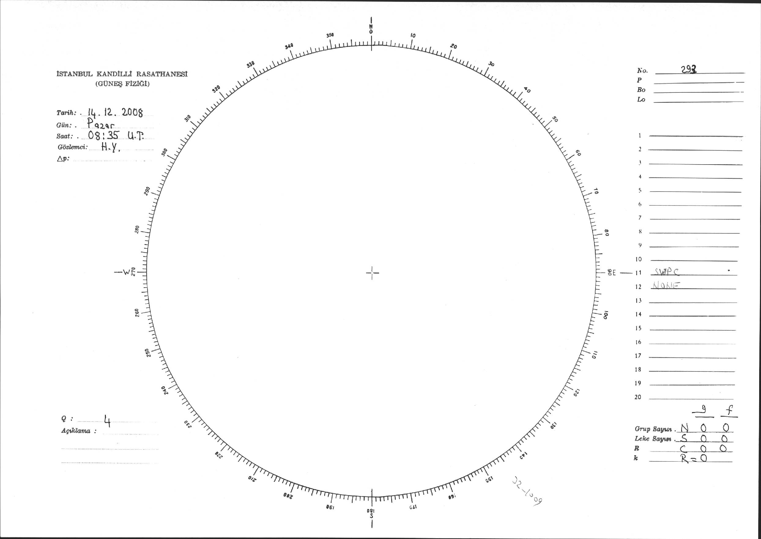 Güneş Lekesi Çizimi - 14.12.2008