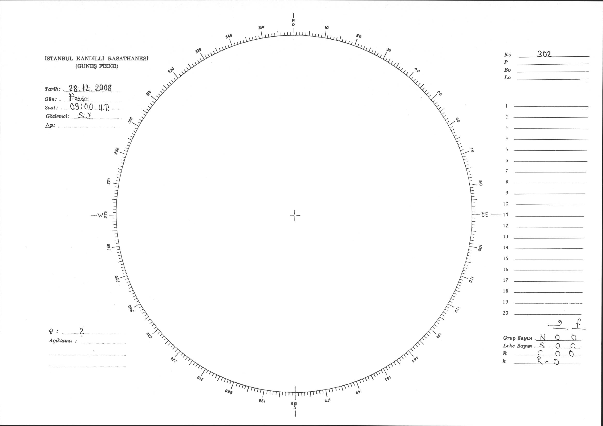 Güneş Lekesi Çizimi - 28.12.2008