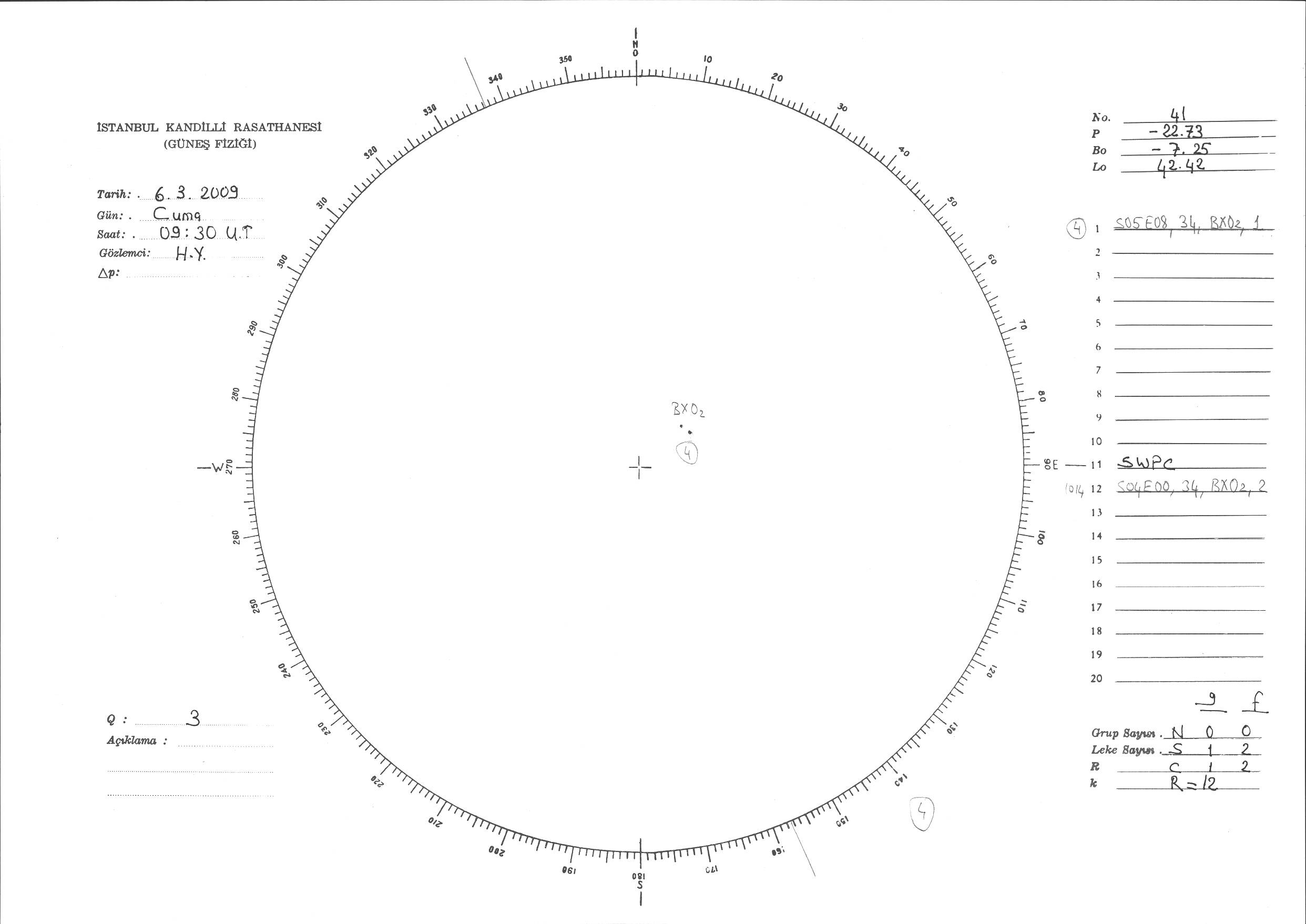 Güneş Lekesi Çizimi - 06.03.2009