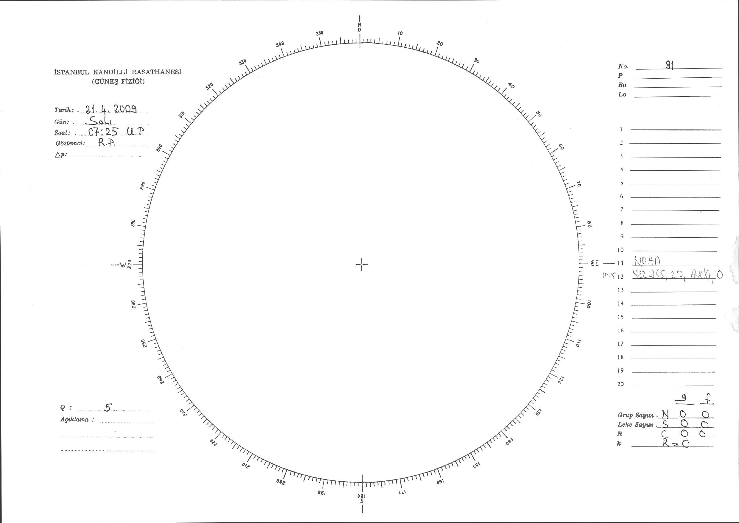 Güneş Lekesi Çizimi - 21.04.2009