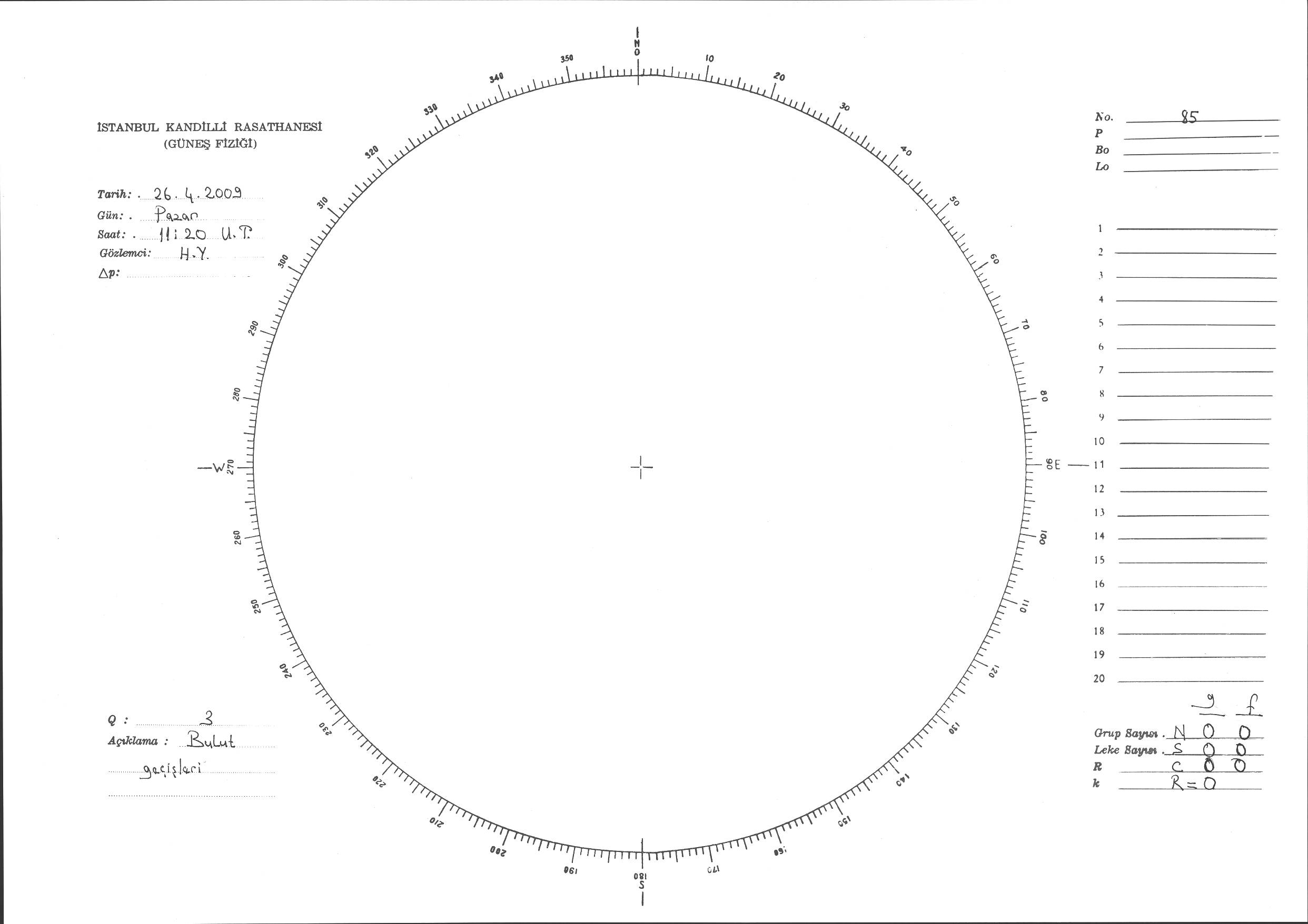 Güneş Lekesi Çizimi - 26.04.2009