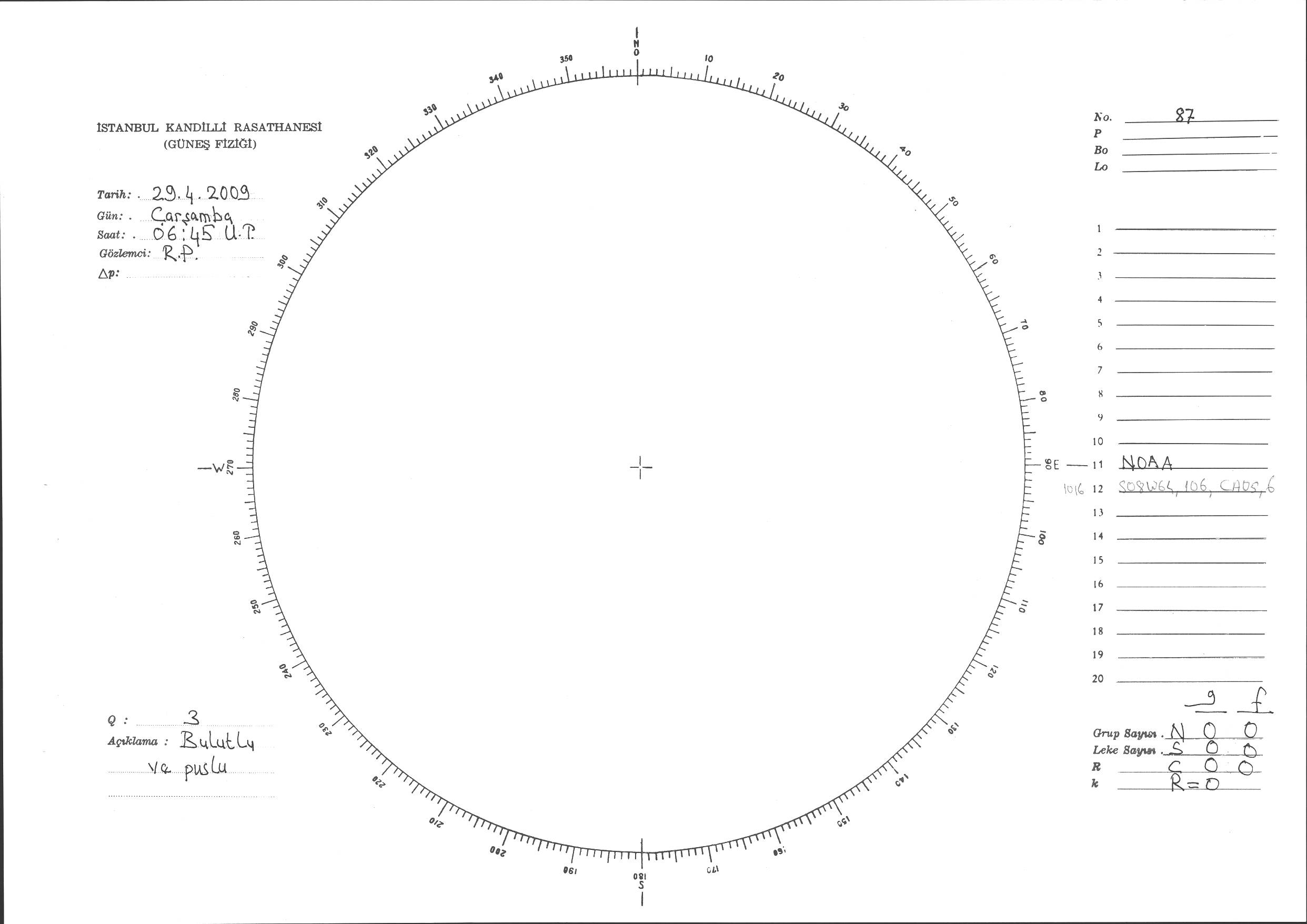 Güneş Lekesi Çizimi - 29.04.2009