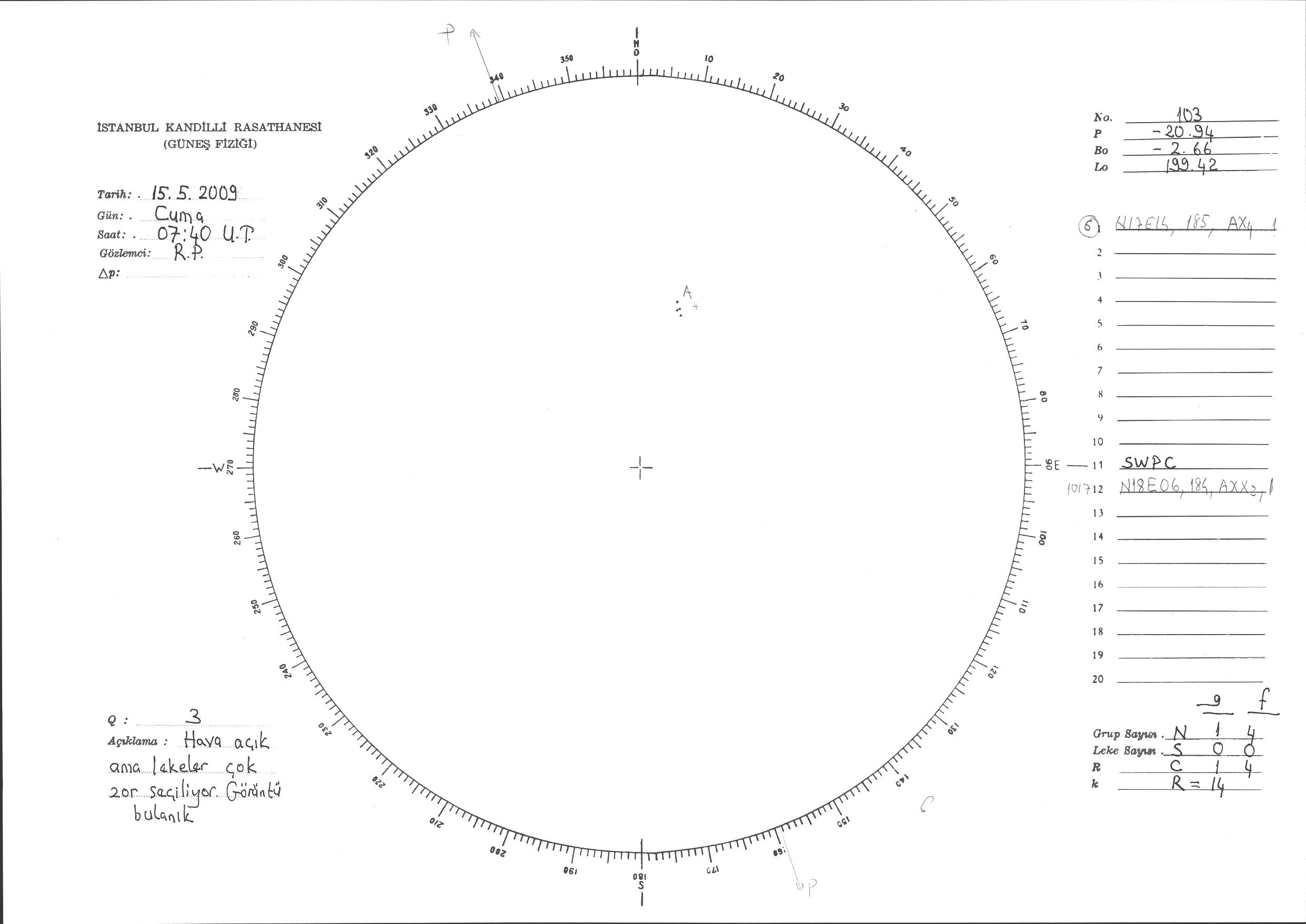 Güneş Lekesi Çizimi - 15.05.2009