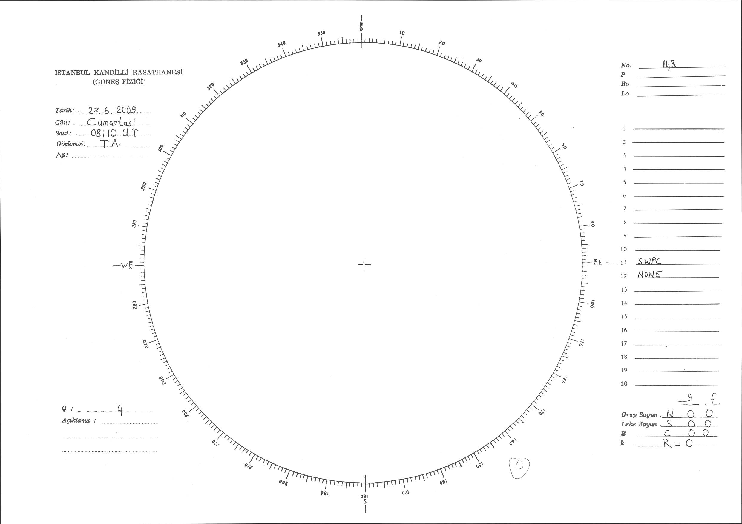Güneş Lekesi Çizimi - 27.06.2009