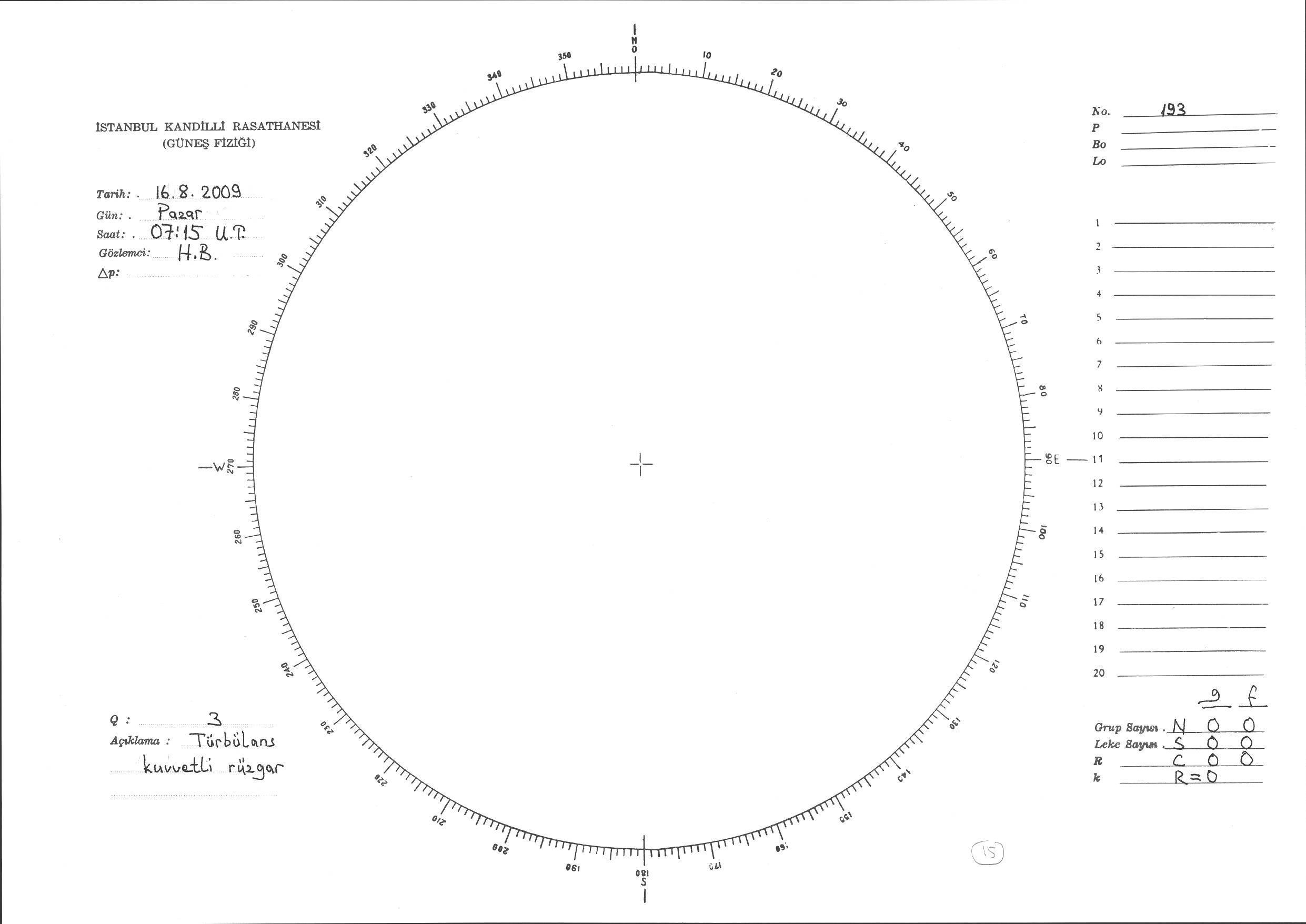 Güneş Lekesi Çizimi - 16.08.2009