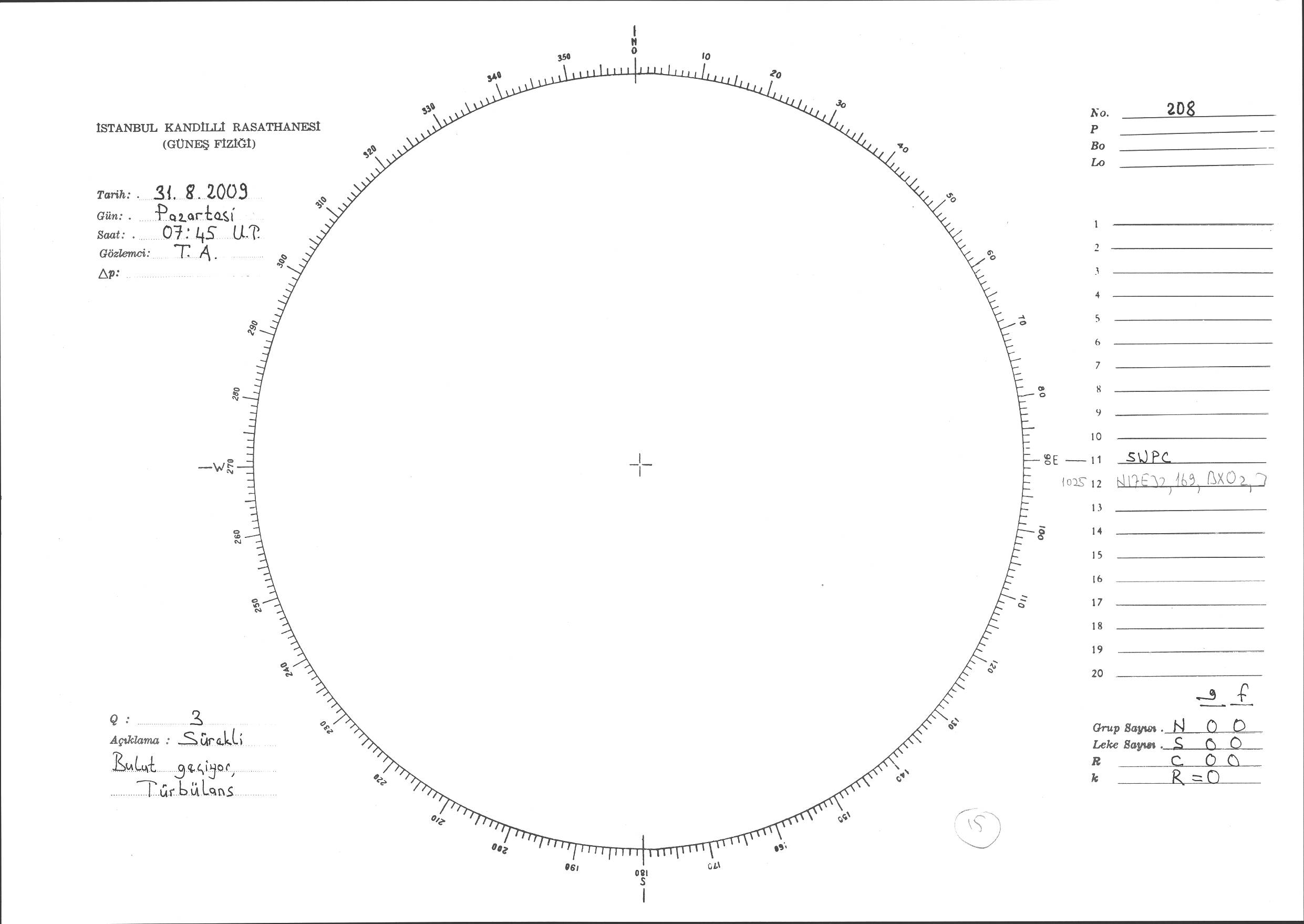 Güneş Lekesi Çizimi - 31.08.2009