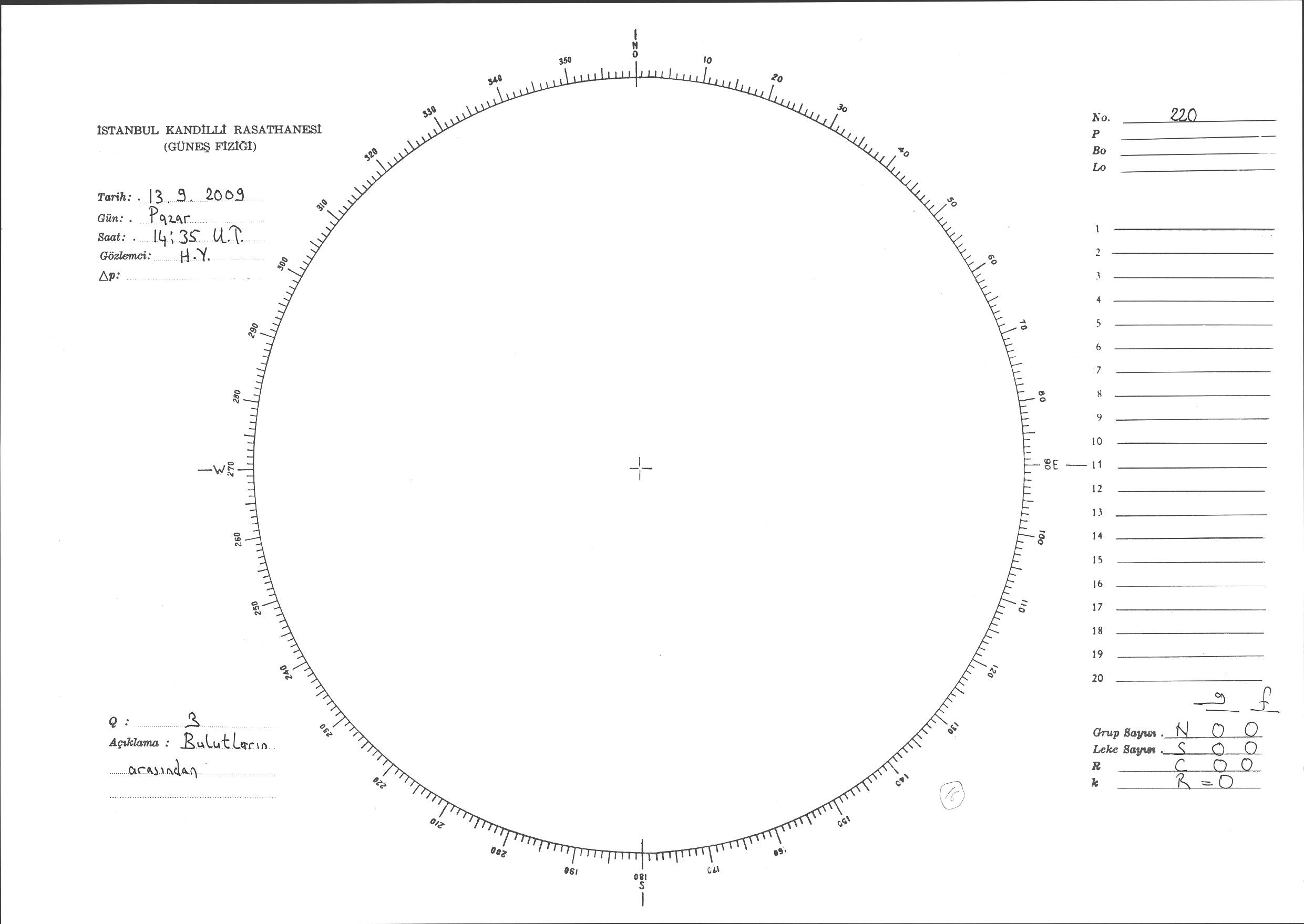 Güneş Lekesi Çizimi - 13.09.2009