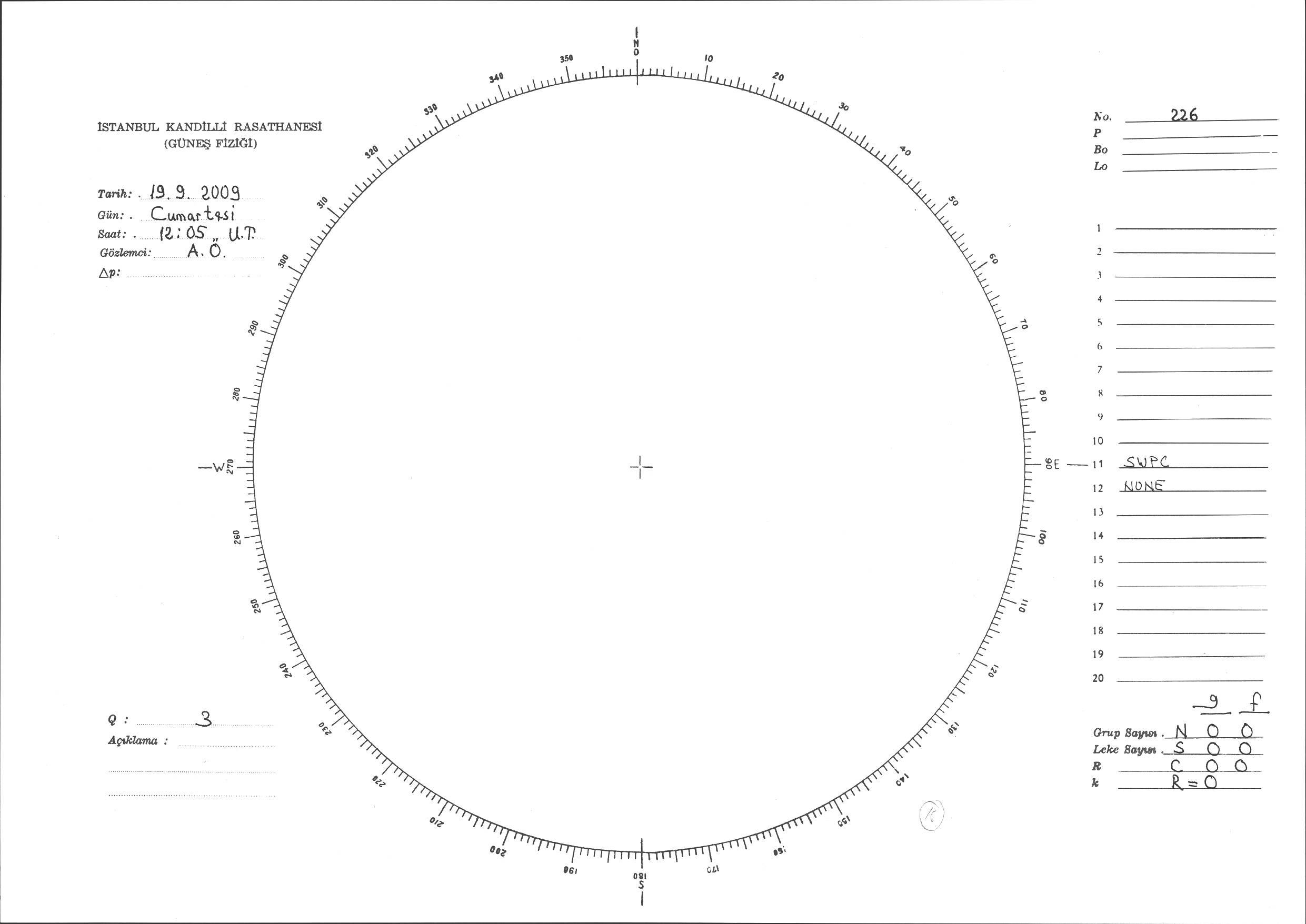 Güneş Lekesi Çizimi - 19.09.2009