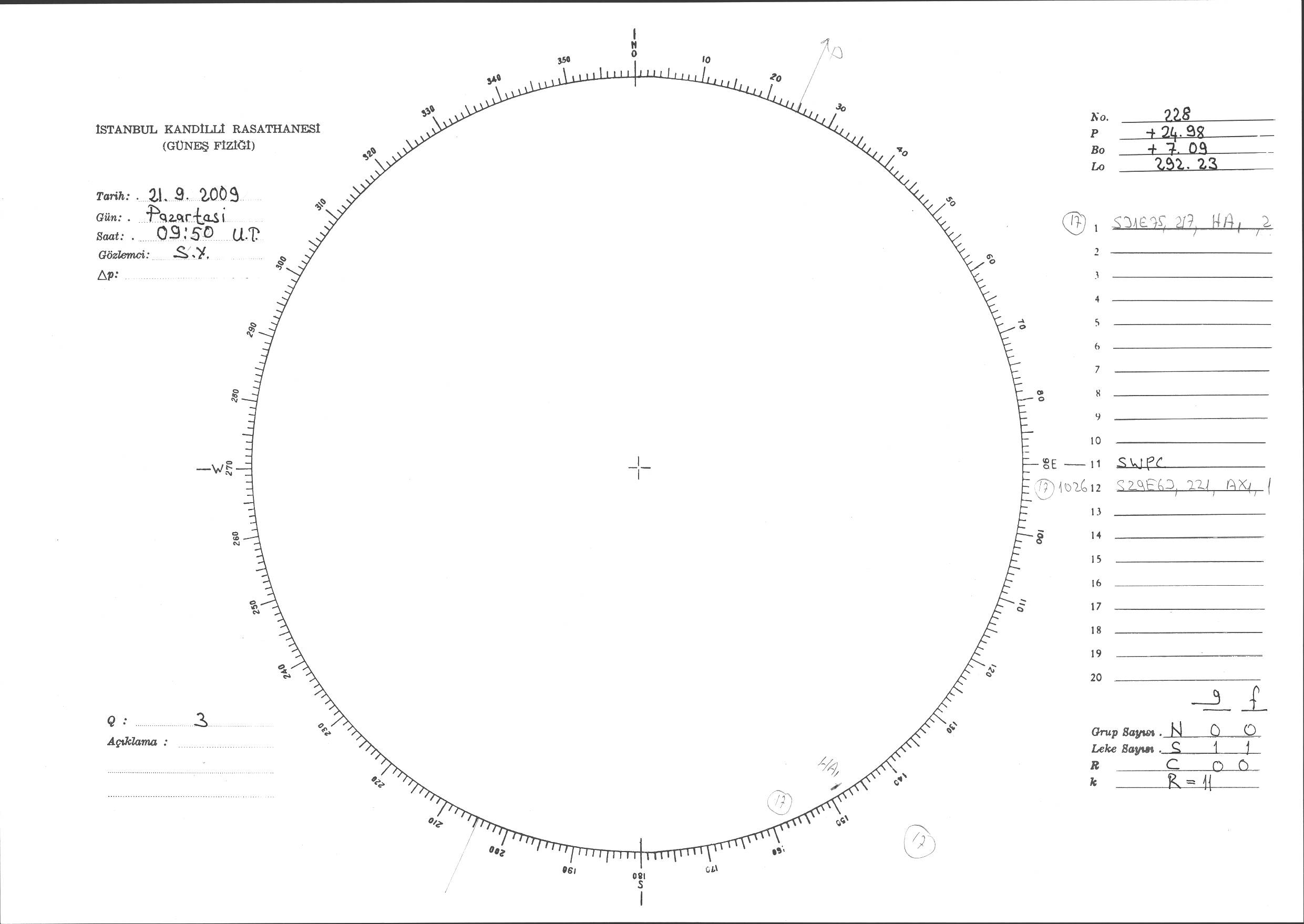 Güneş Lekesi Çizimi - 21.09.2009