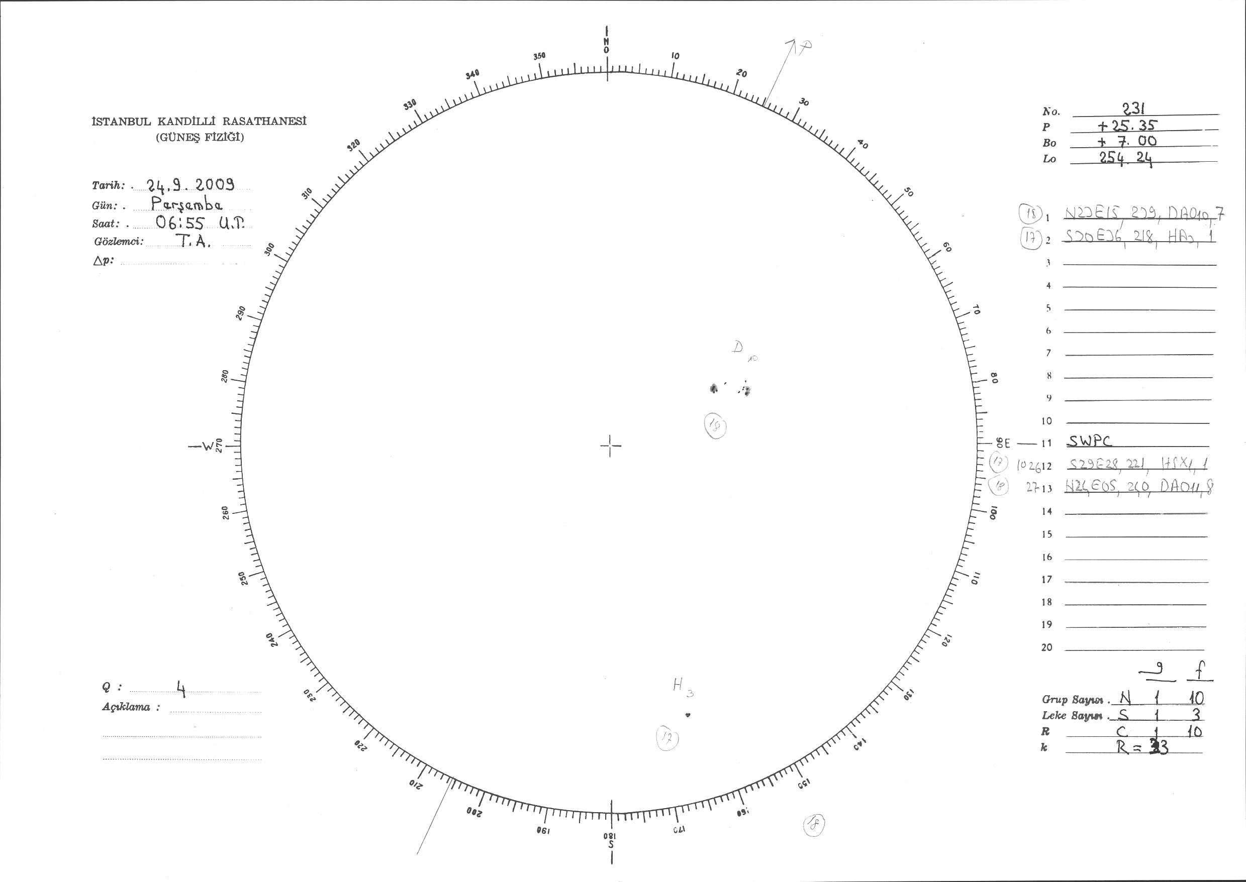 Güneş Lekesi Çizimi - 24.09.2009