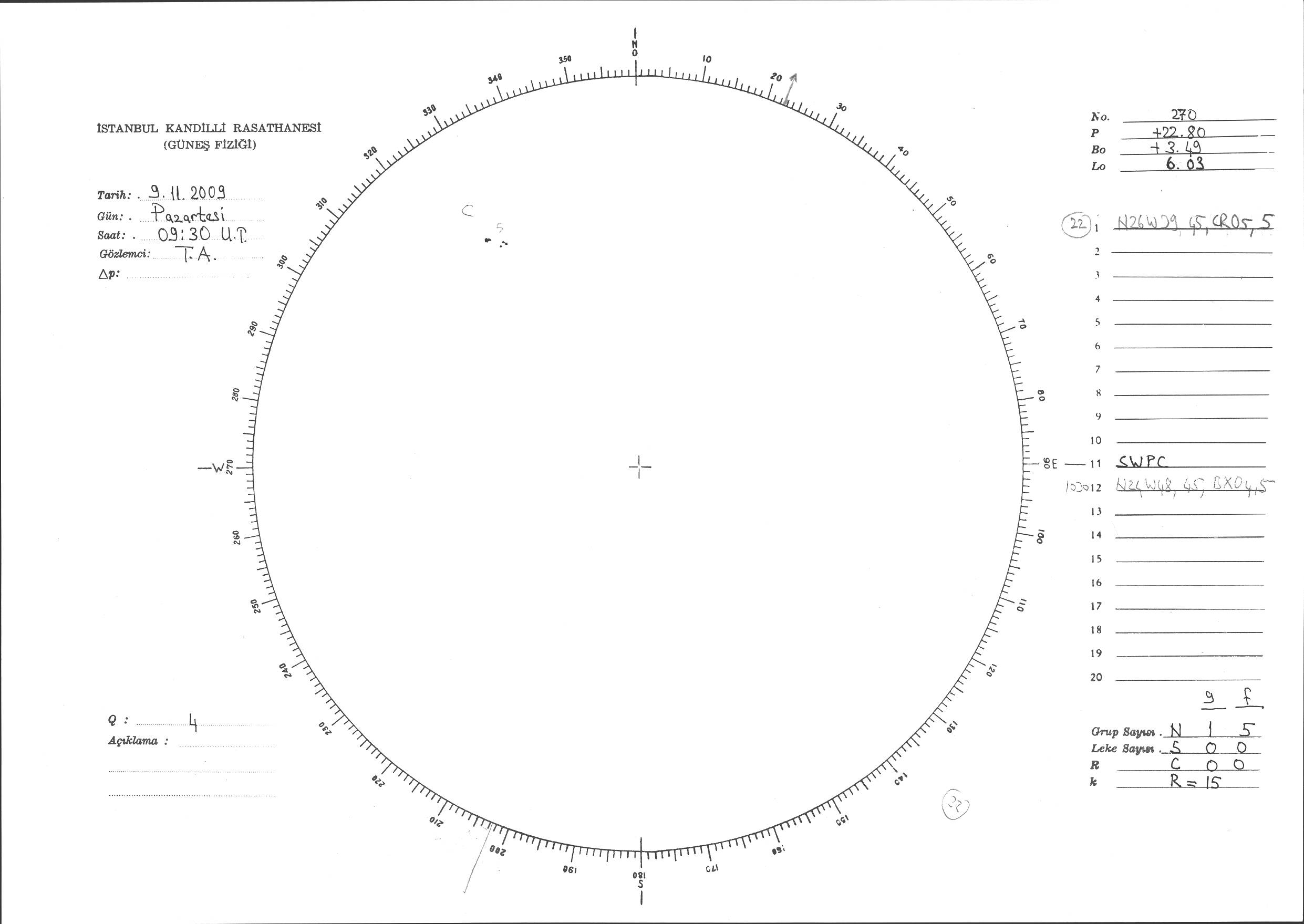 Güneş Lekesi Çizimi - 09.11.2009