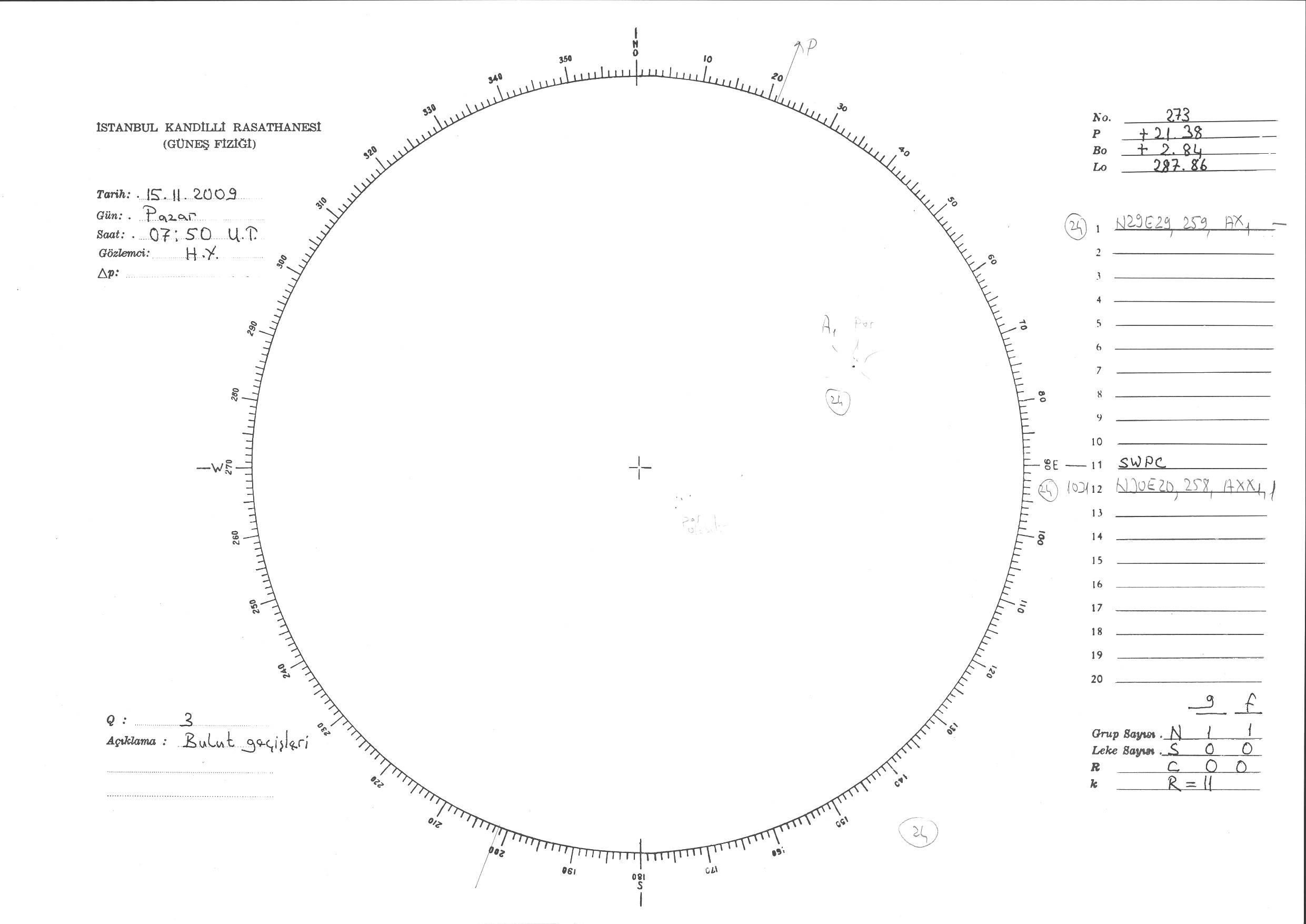Güneş Lekesi Çizimi - 15.11.2009