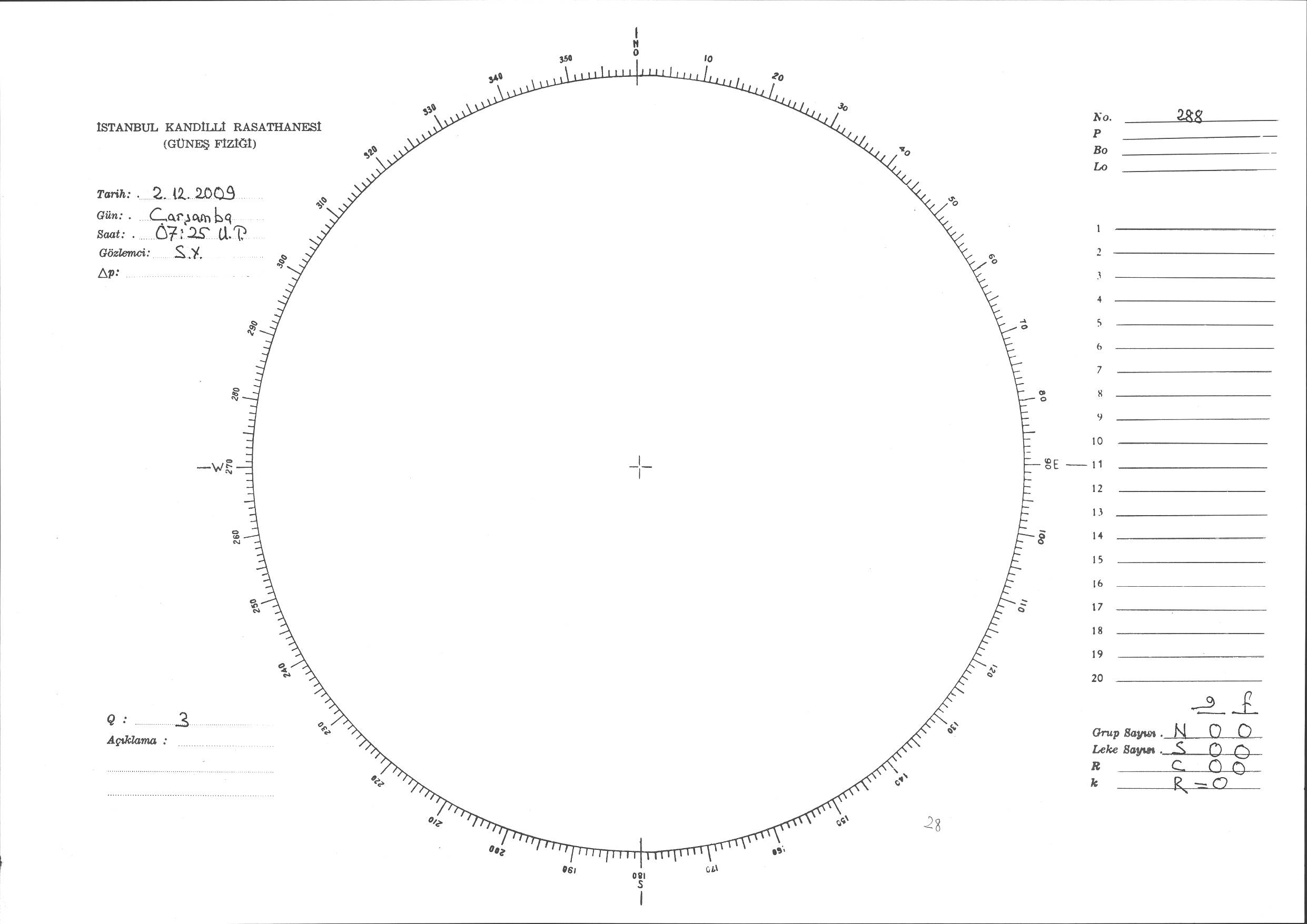 Güneş Lekesi Çizimi - 02.12.2009