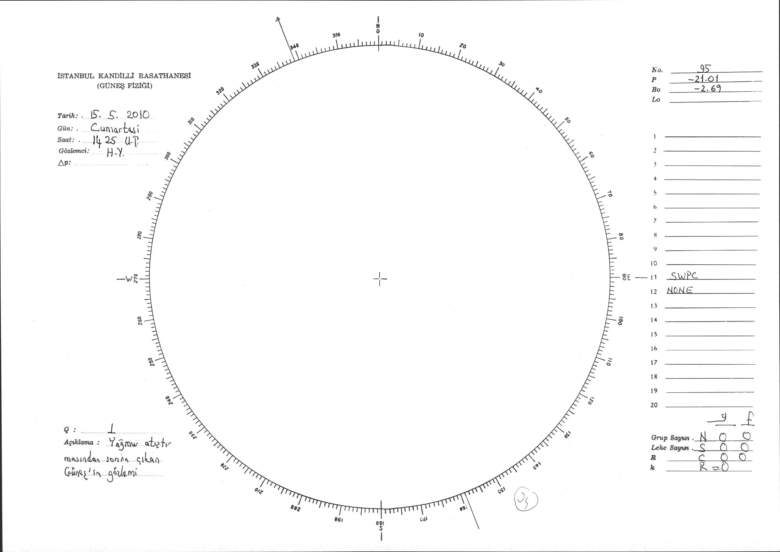 Güneş Lekesi Çizimi - 15.05.2010