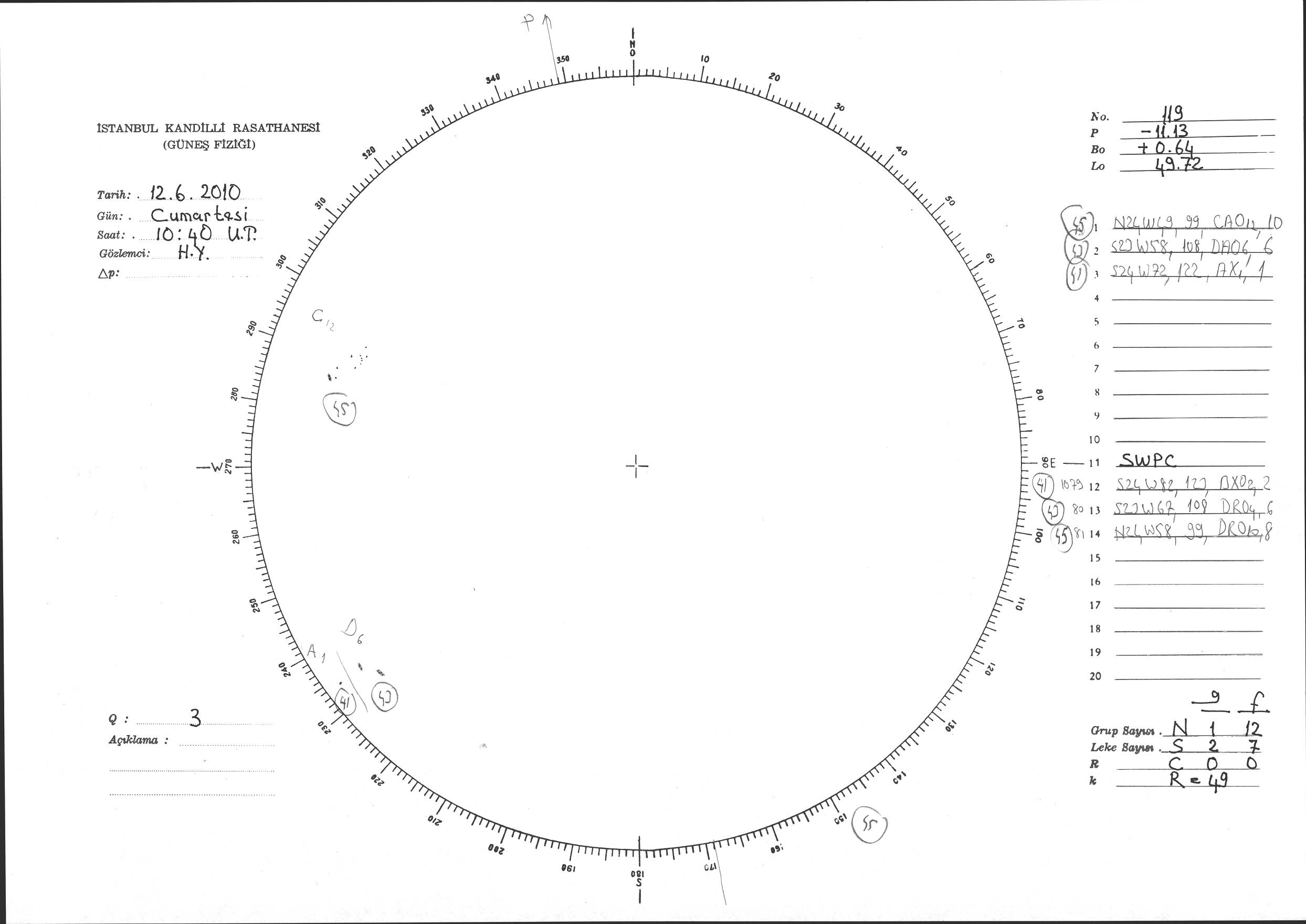 Güneş Lekesi Çizimi - 12.06.2010