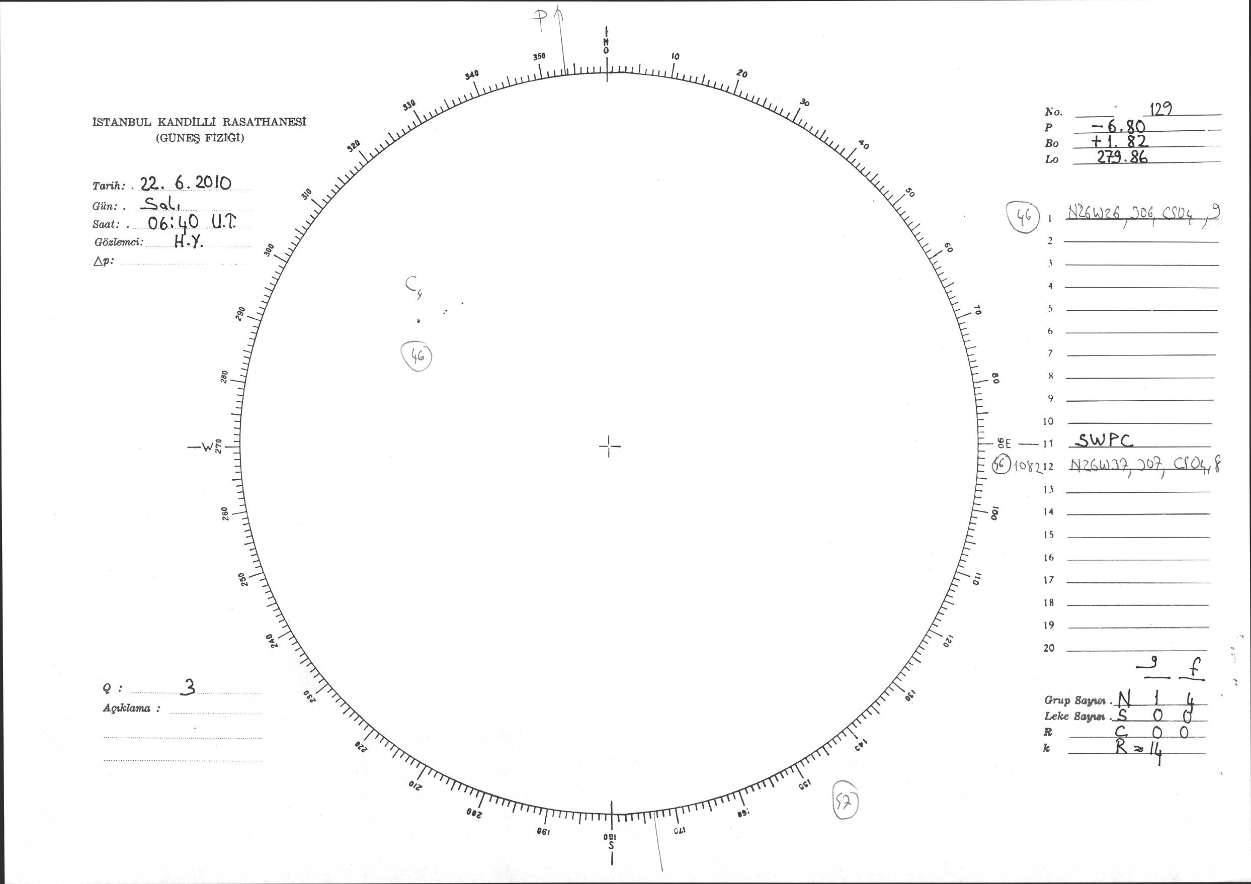 Güneş Lekesi Çizimi - 22.06.2010