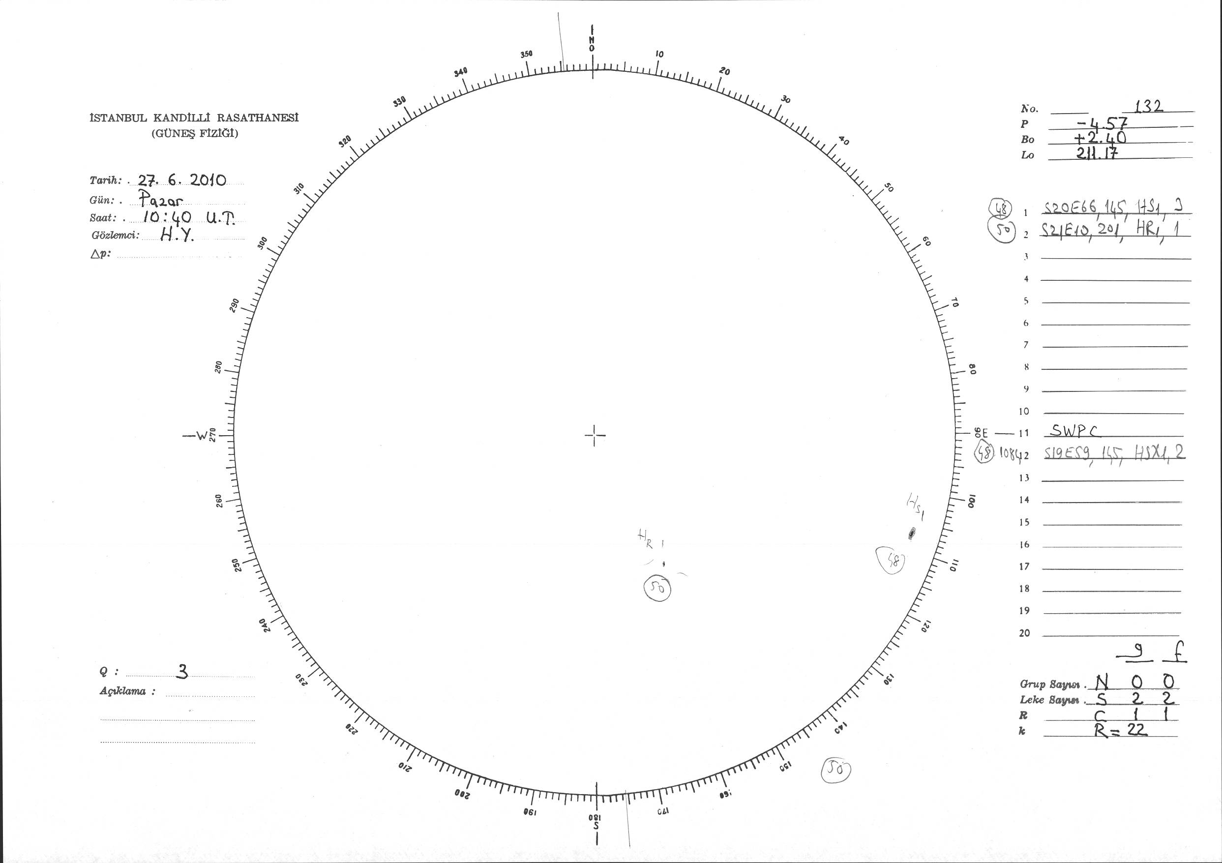 Güneş Lekesi Çizimi - 27.06.2010