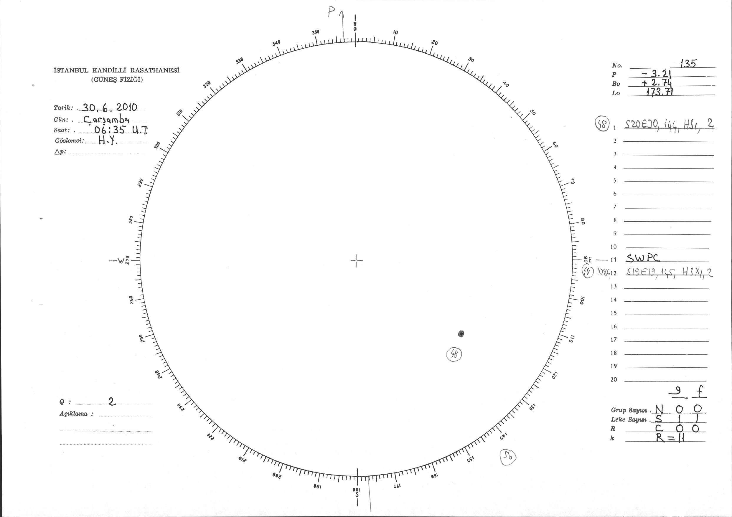 Güneş Lekesi Çizimi - 30.06.2010