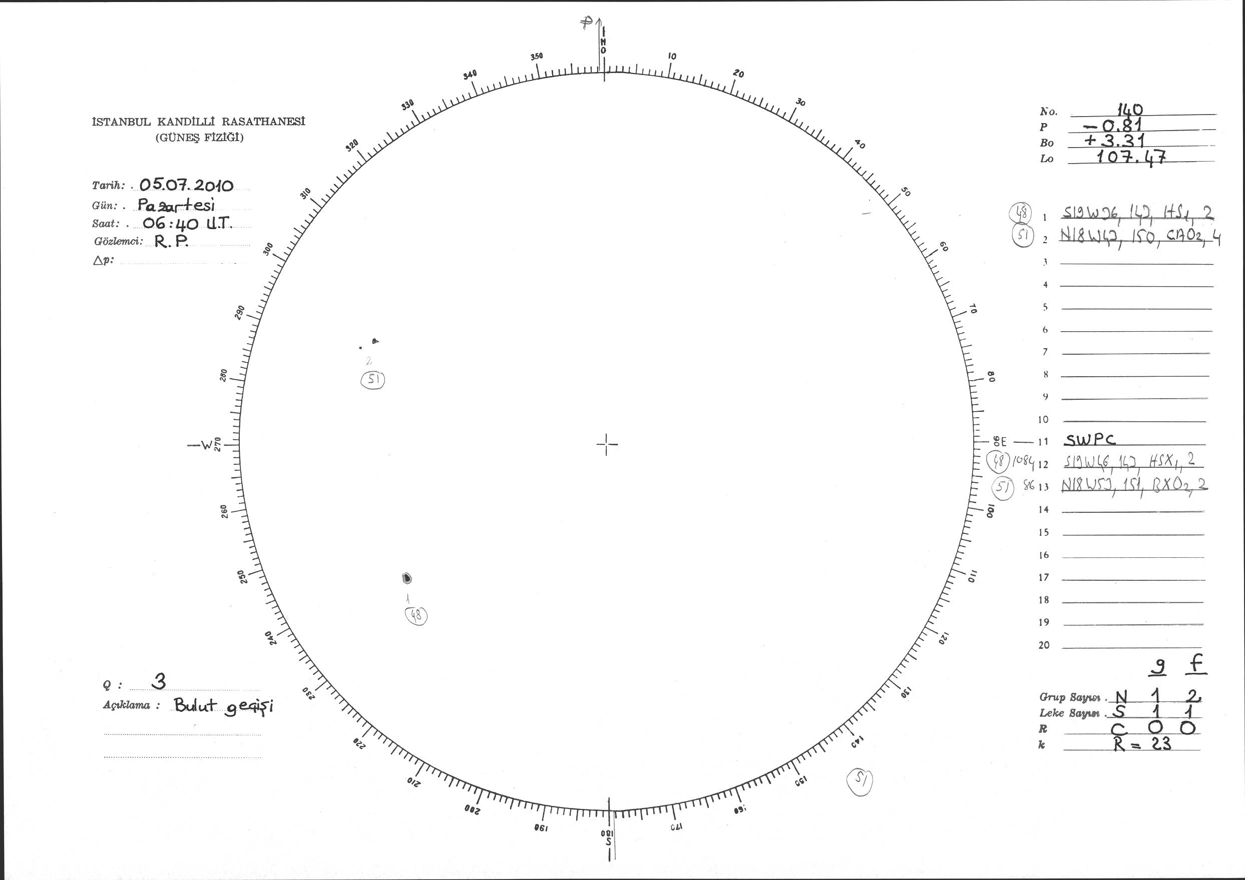 Güneş Lekesi Çizimi - 05.07.2010