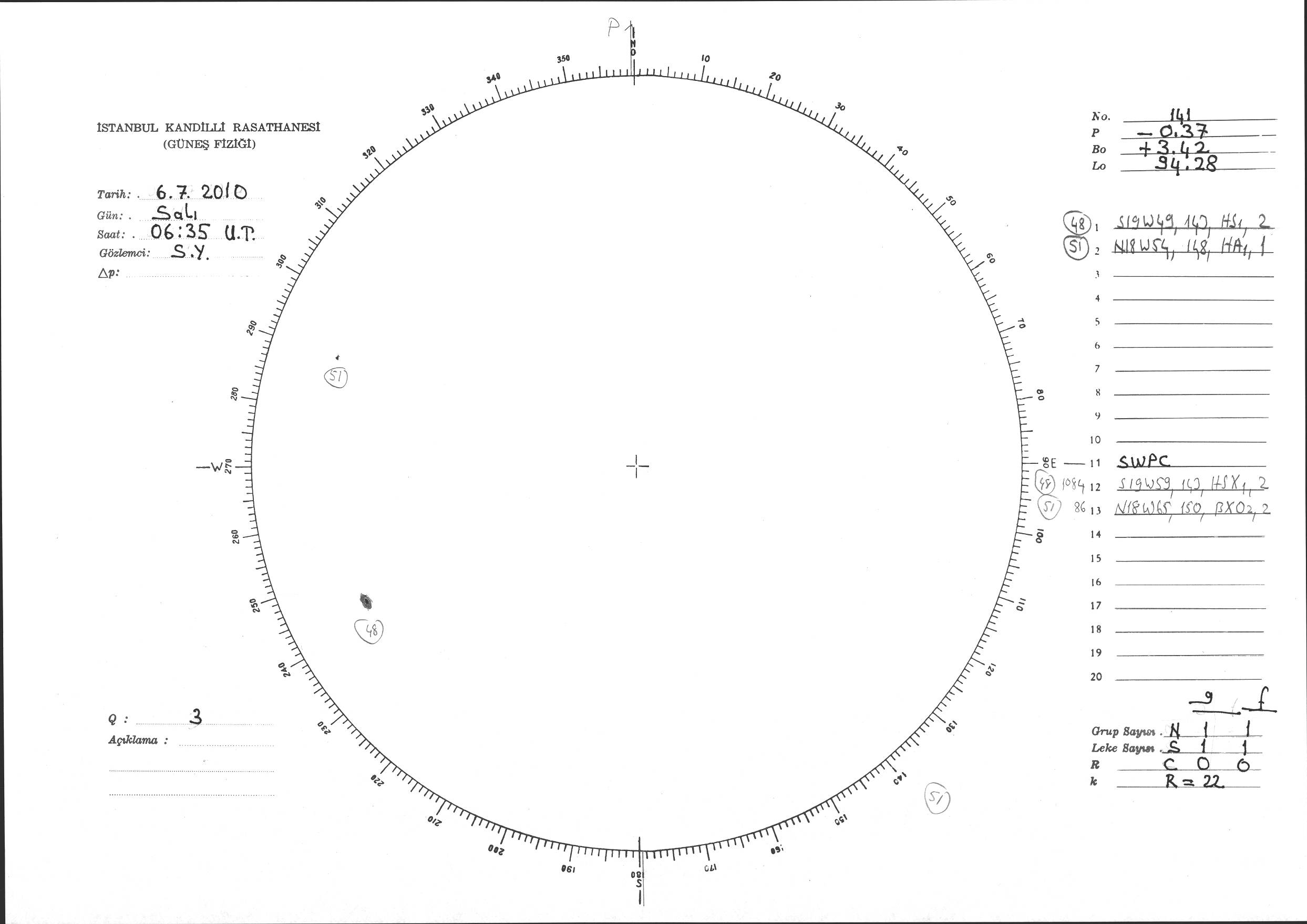 Güneş Lekesi Çizimi - 06.07.2010