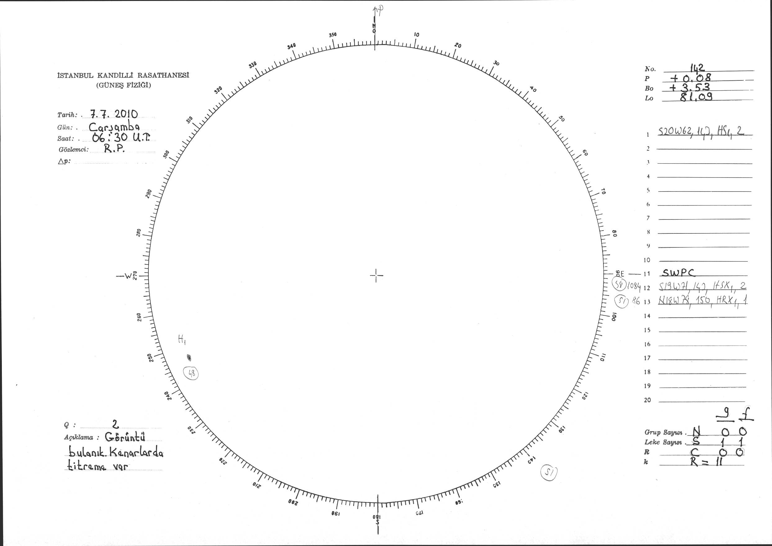 Güneş Lekesi Çizimi - 07.07.2010